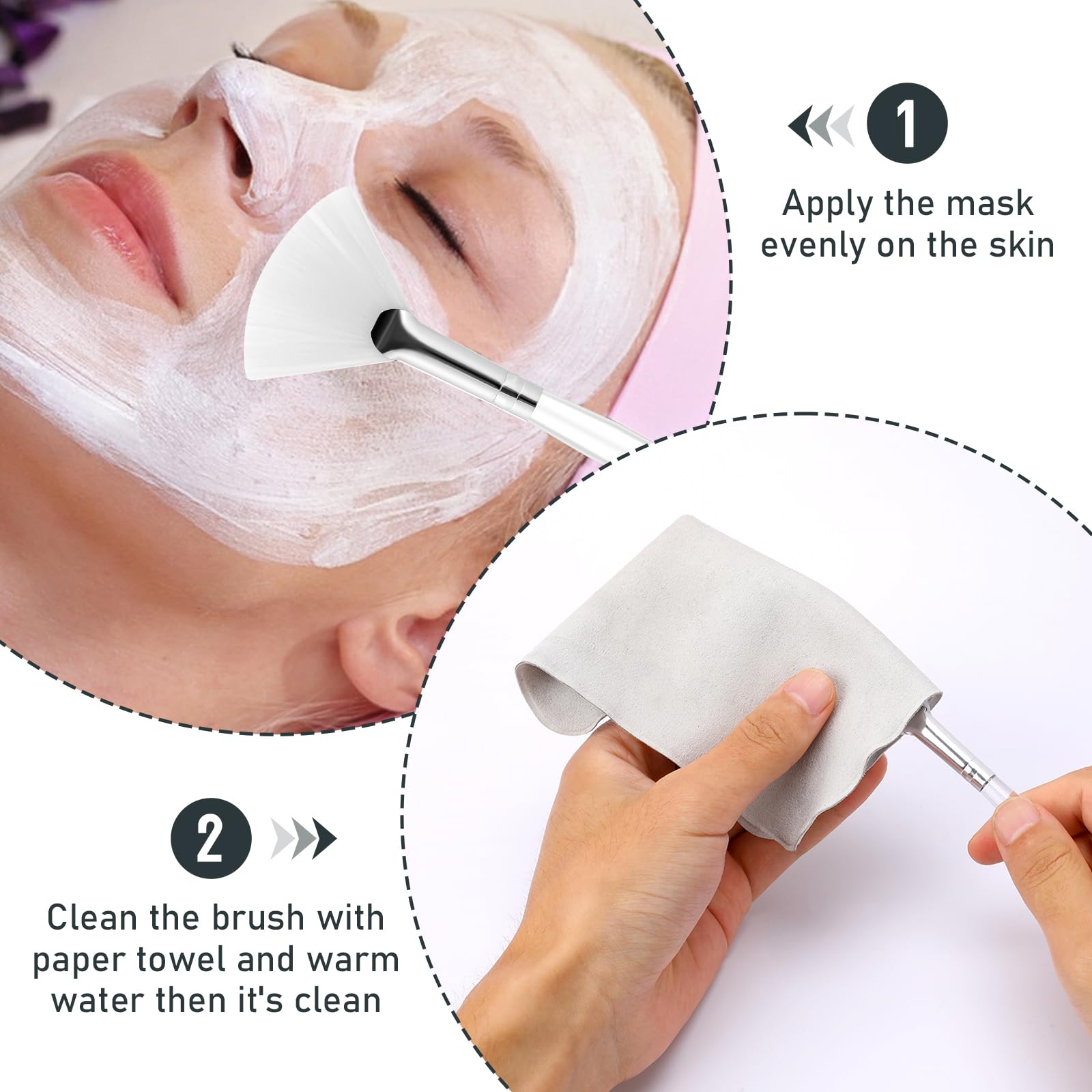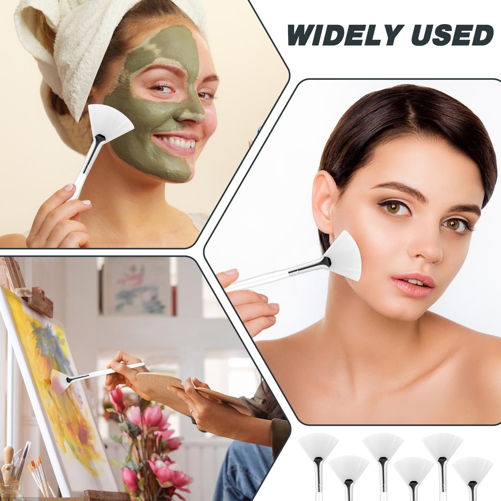 • Ideal fuer vielfältige Anwendungen Dieses Set eignet sich perfekt zum Auftragen von Gesichtsmasken, Schlamm- oder Tonmasken, Feuchtigkeitscremes, Seren und weiteren Pflegeprodukten. Die Faecherform erleichtert das flaechenhafte Auftragen sowie das gezielte Verteilen in schwierigen Konturbereichen – so erreichst du schnell ein gleichmaessiges Ergebnis mit sauberem, professionellem Look.