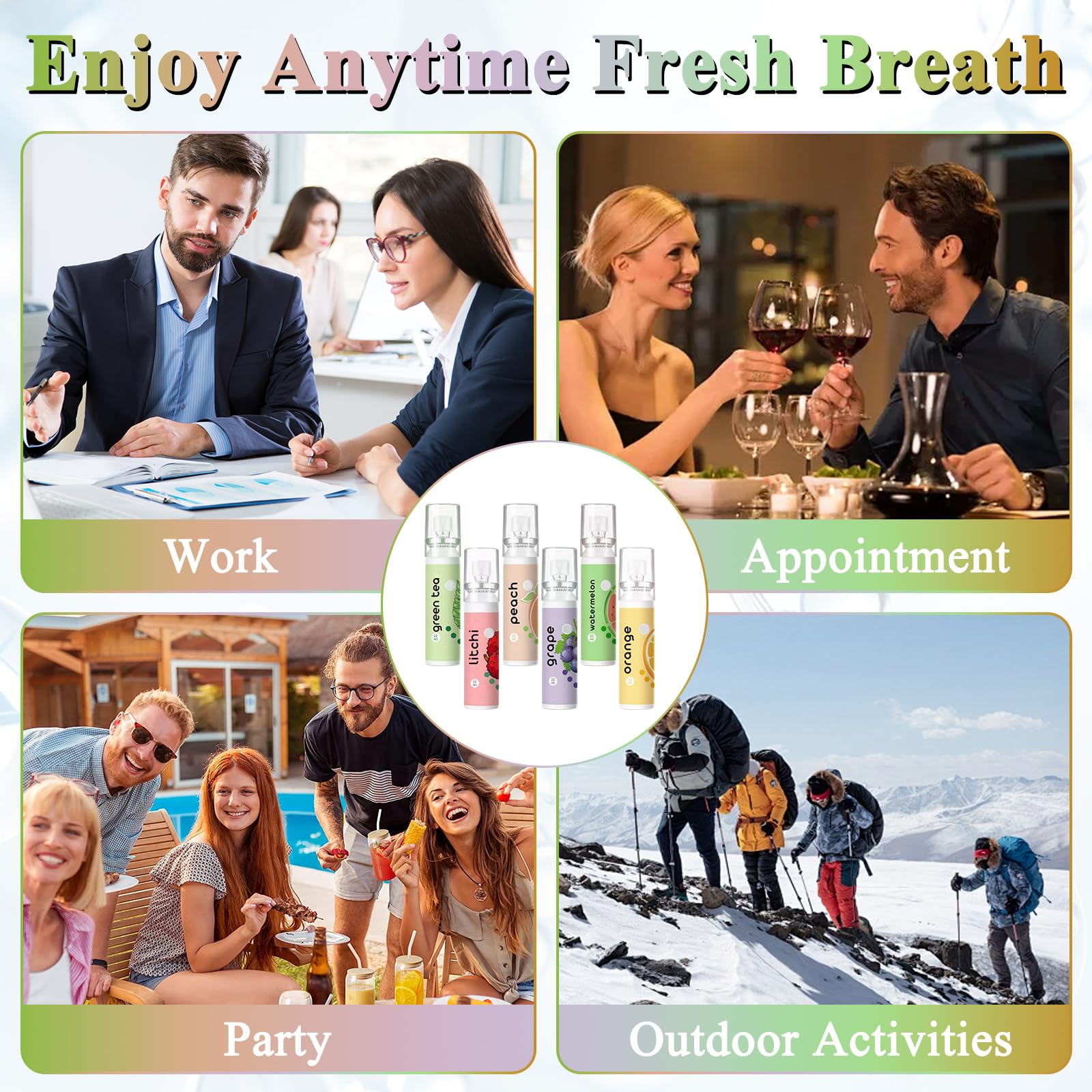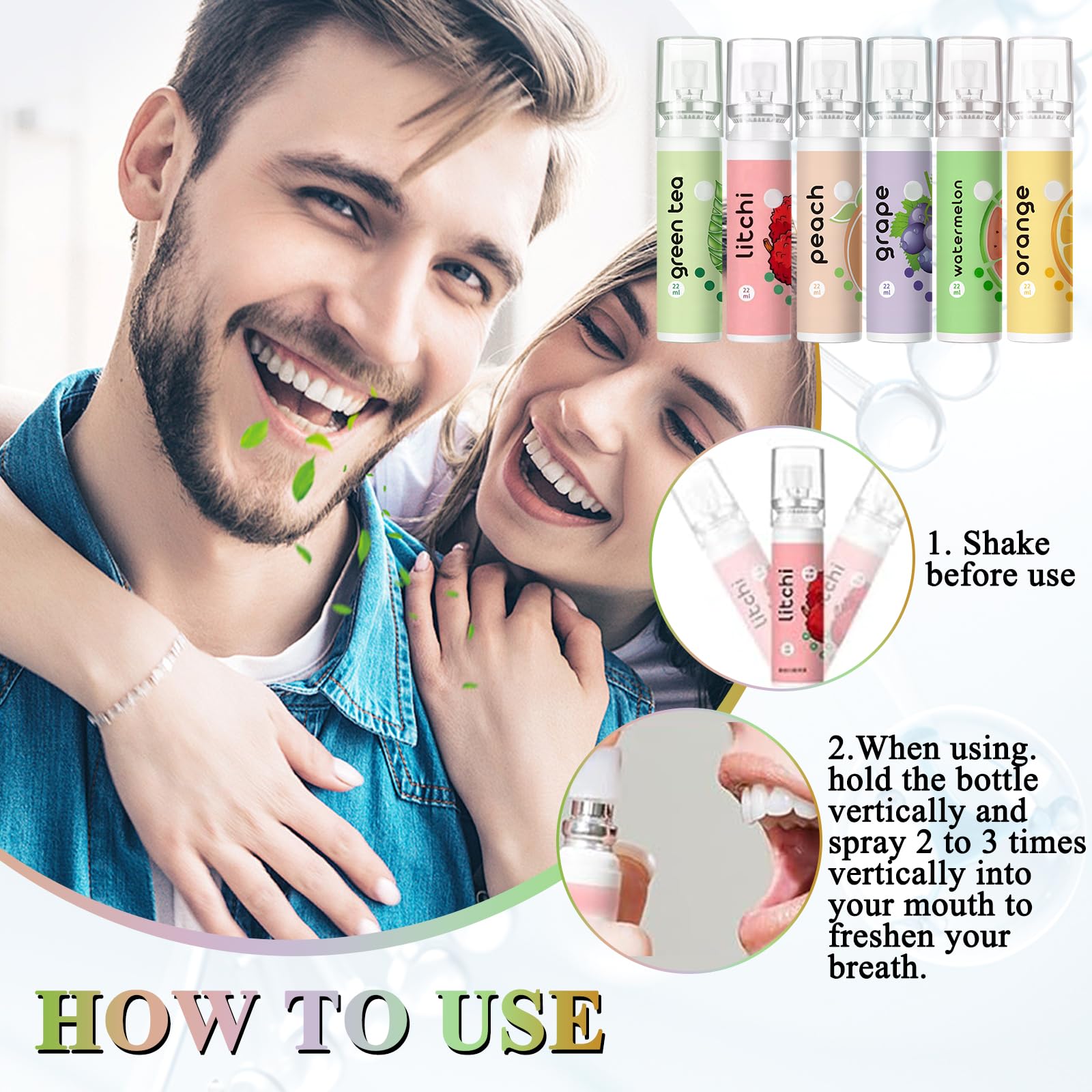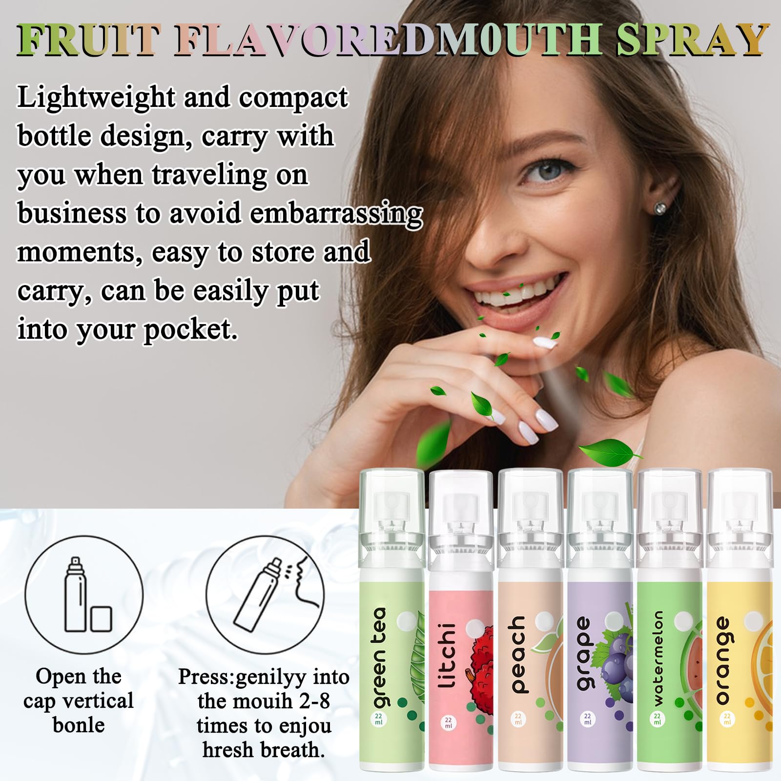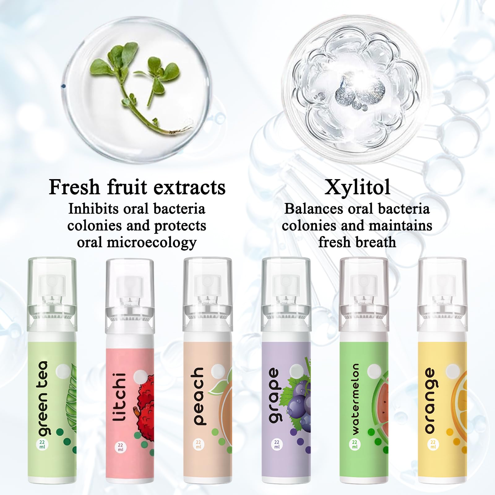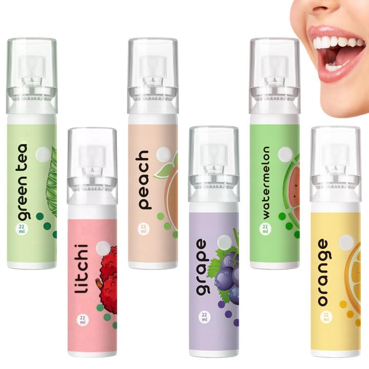 6 Stück Mundspray mit Fruchtgeschmack, Mundspray Gegen Mundgeruch,Tragbar erfrischendes Mundspray,Reduzieren Sie Mundtrockenheit und Halten Sie Den Atem Frisch (22ml)