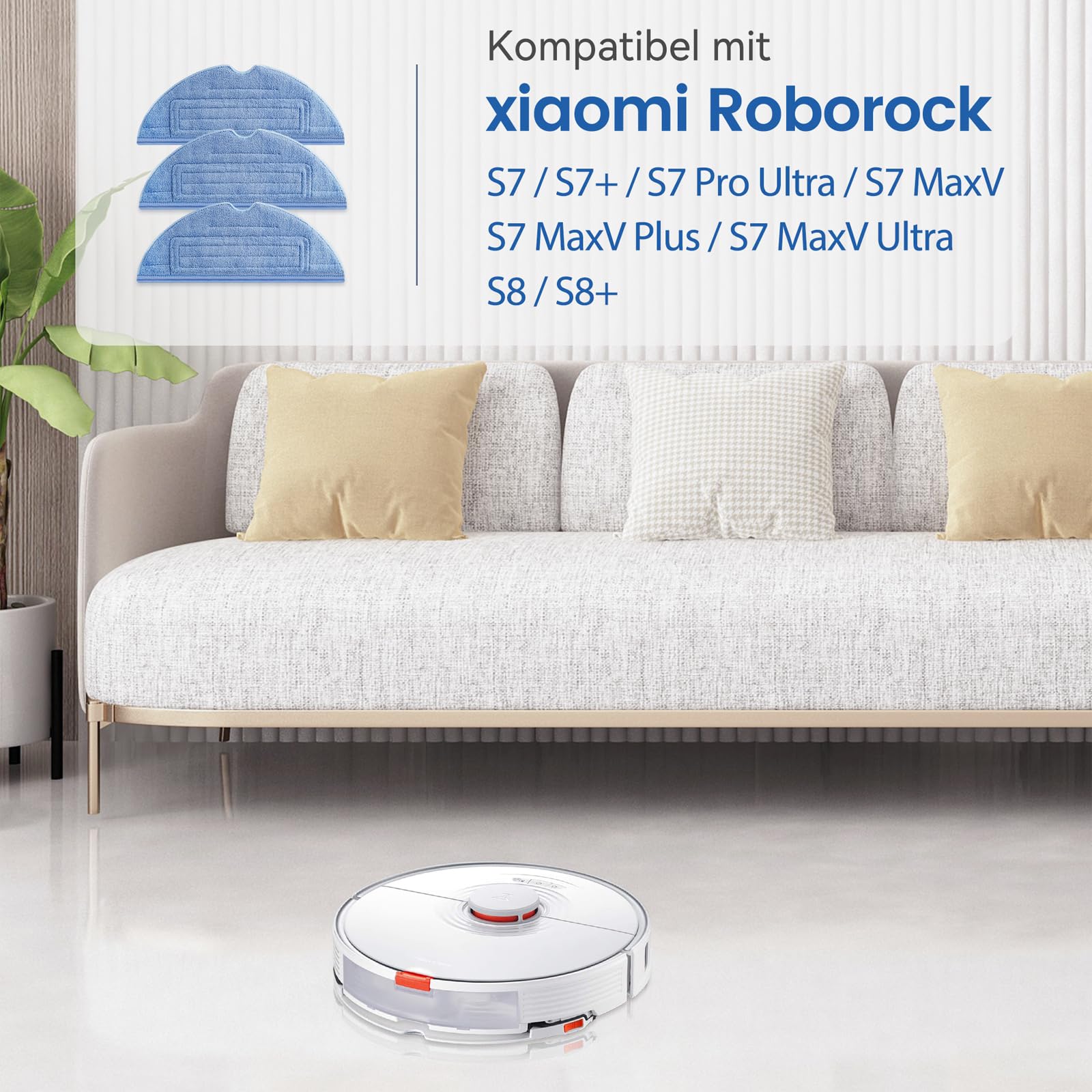 KGC Ersatz Wischtücher für Roborock S8 Wischtücher,Mikrofaser Wischmop Kompatibel mit Xiaomi Roborock S7/S7+/S7 MaxV/S7 MaxV Plus/S7 MaxV Ultra/S8/S8+ Wiederverwendbar&Waschbar(3 Stück)