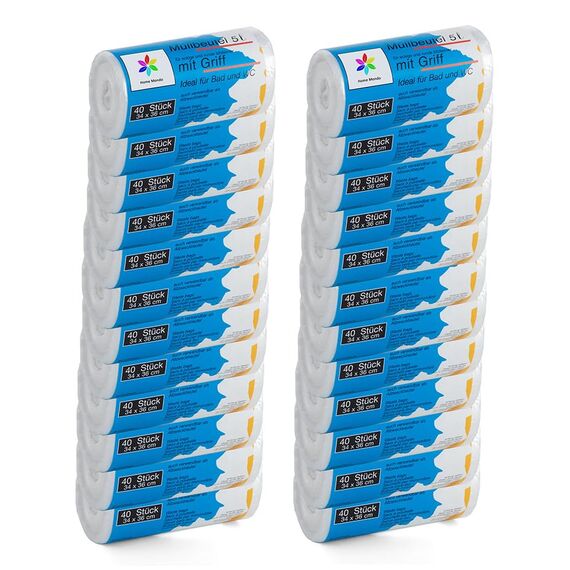 960 Stück Müllbeutel Premiumline: 5 Liter, 24er Pack, Grösse: 34 x 36 cm - Besonders reissfest und wasserdicht - Mit Trage-Griff/Henkel