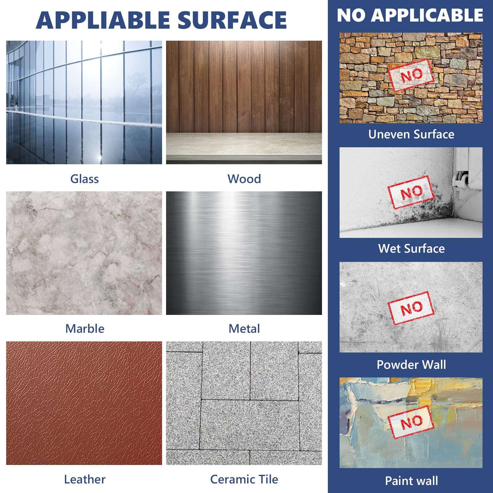 beidseitiges Klebeband ist nicht geeignet für gebrochene Flächen, gebeizte Flächen und unebene Flächen.