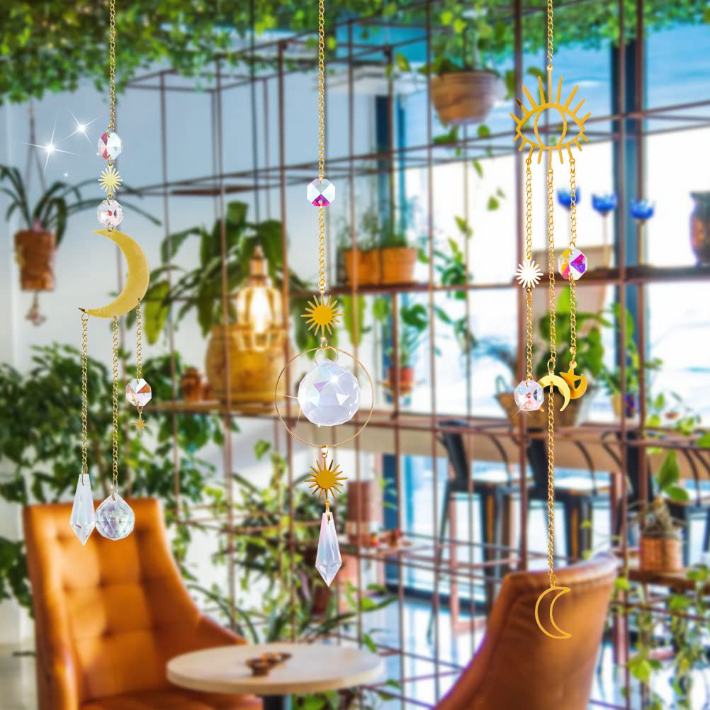 7 Stück Sonnenfänger Kristall, Sonnenfänger Garten Mond Stern Regenbogen Kristall Suncatcher Fensterschmuck Hängend Gartendeko für Draussen Ramadan Deko Hochzeit Party