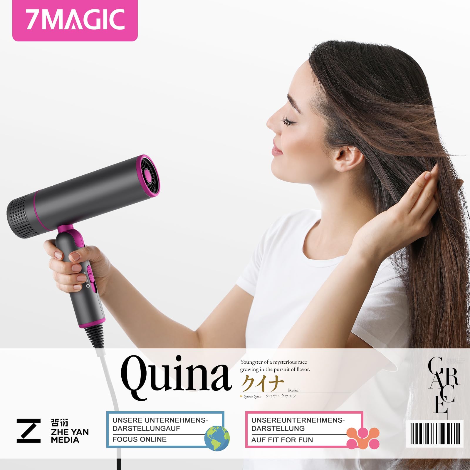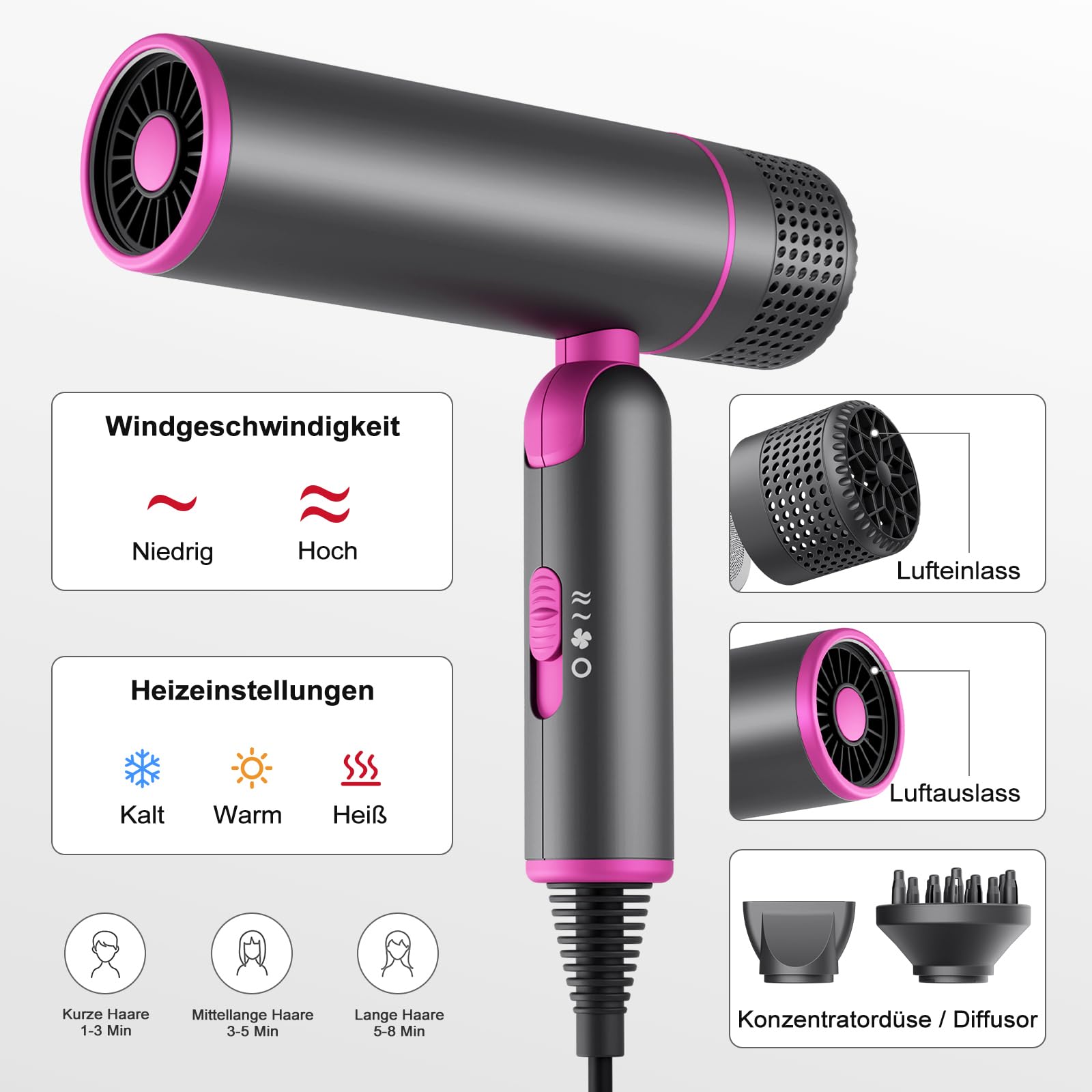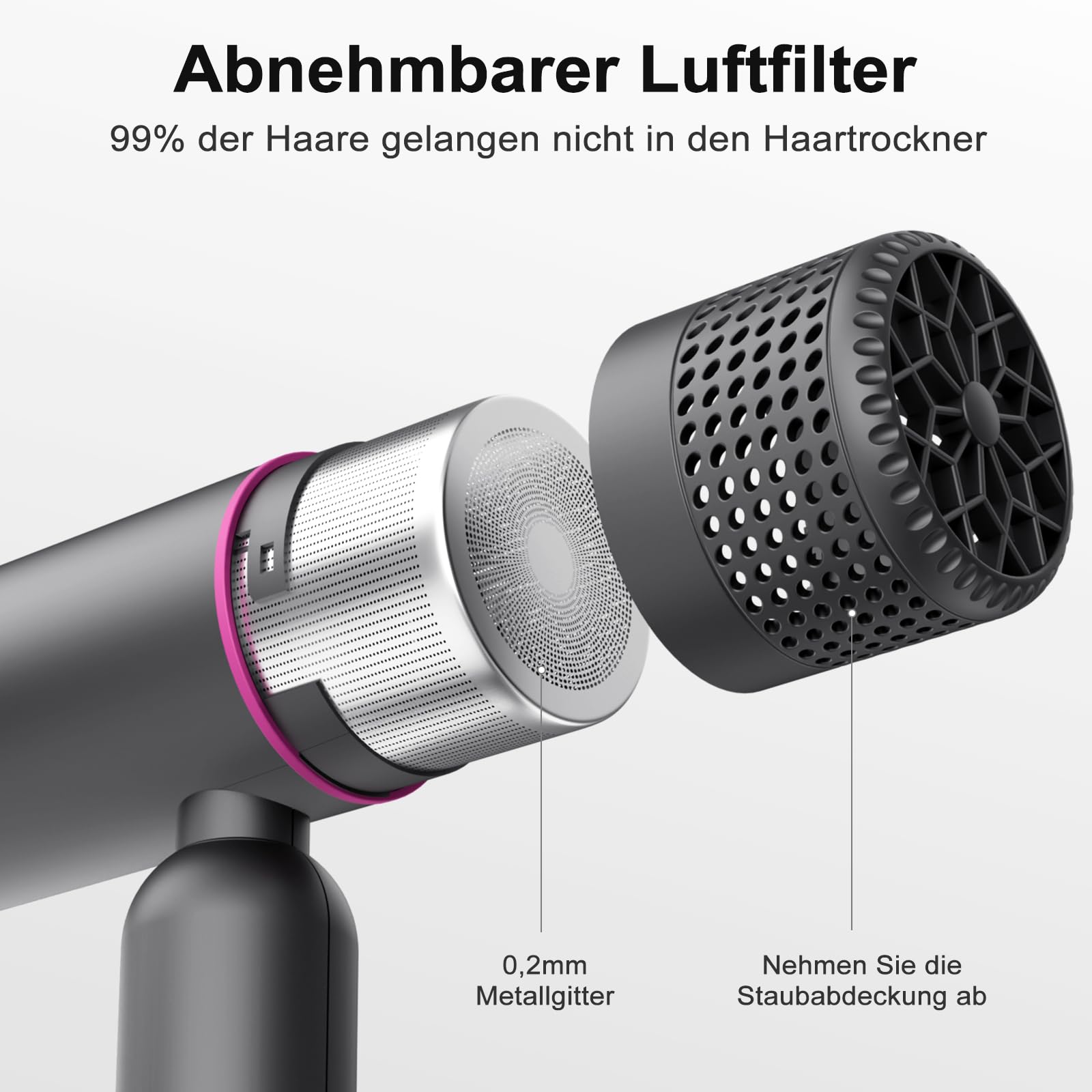 7MAGIC Fön Haartrockner Föhn mit Diffusor, Reisefön Klappbar, 30% Schnellere Trocknung, 300 Mio. Ionen, 99% Haarsaugschutz, Überhitzungsschutz, 1600W, Ultraleicht für alle Haartypen, Grau