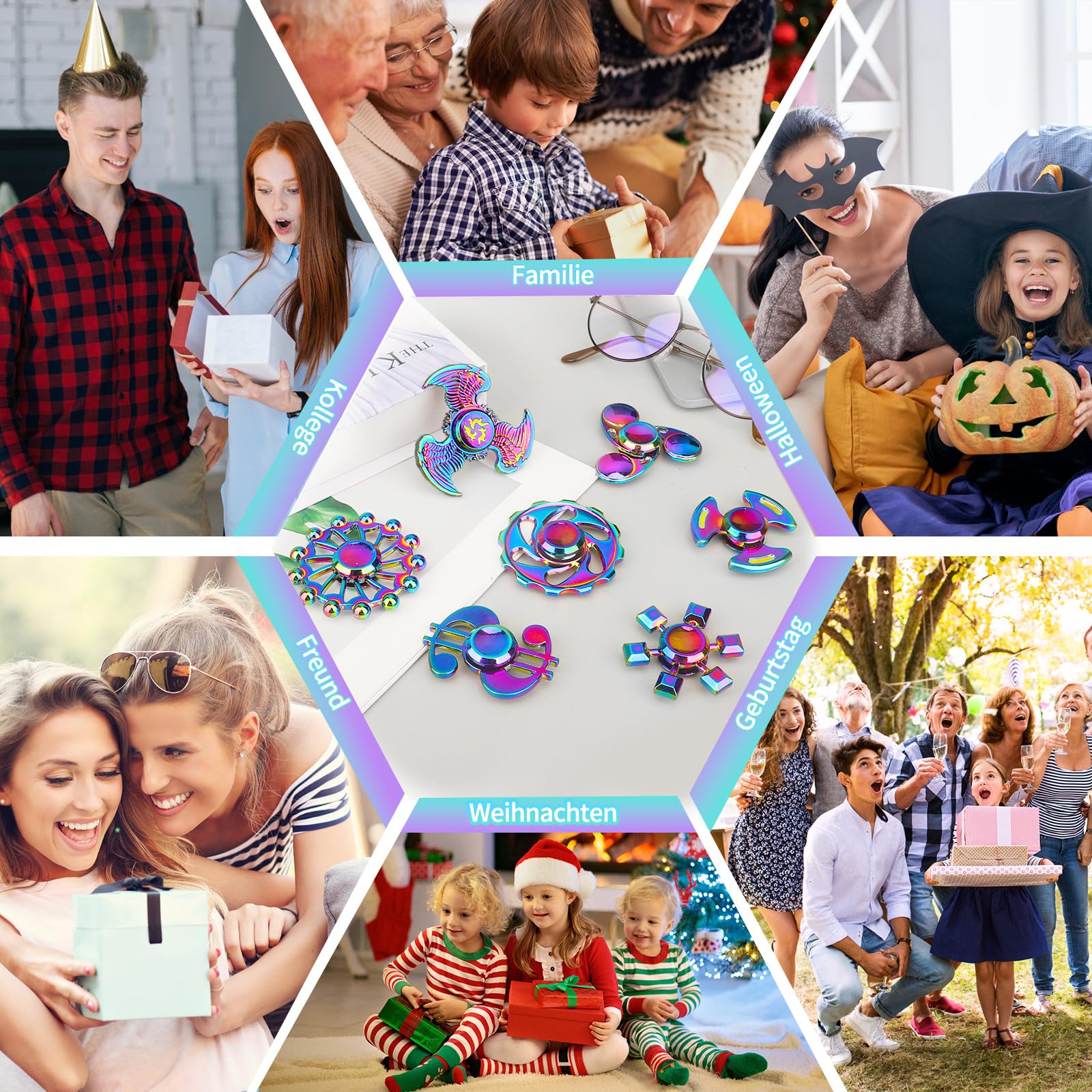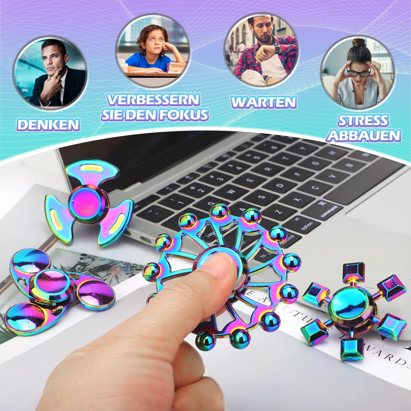 7PCS Cool Fidget Spinners Toy Pack Spielzeug Set for Kids Adults, Regenbogen Metal Finger Hand Spinners Set Fingertip Gyro for Spirale Twister Anti Angst Geschenke, Geschenk für Jungen Mädchen