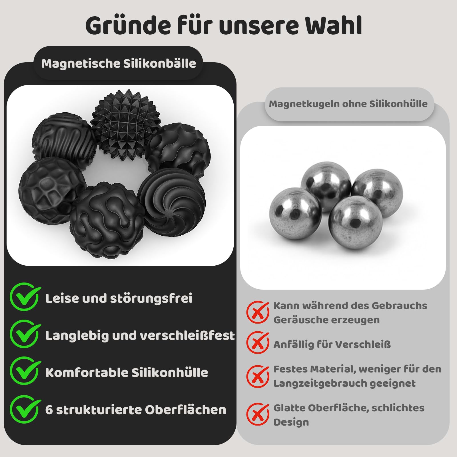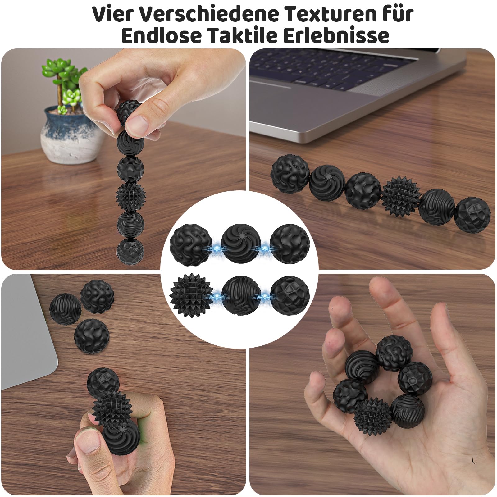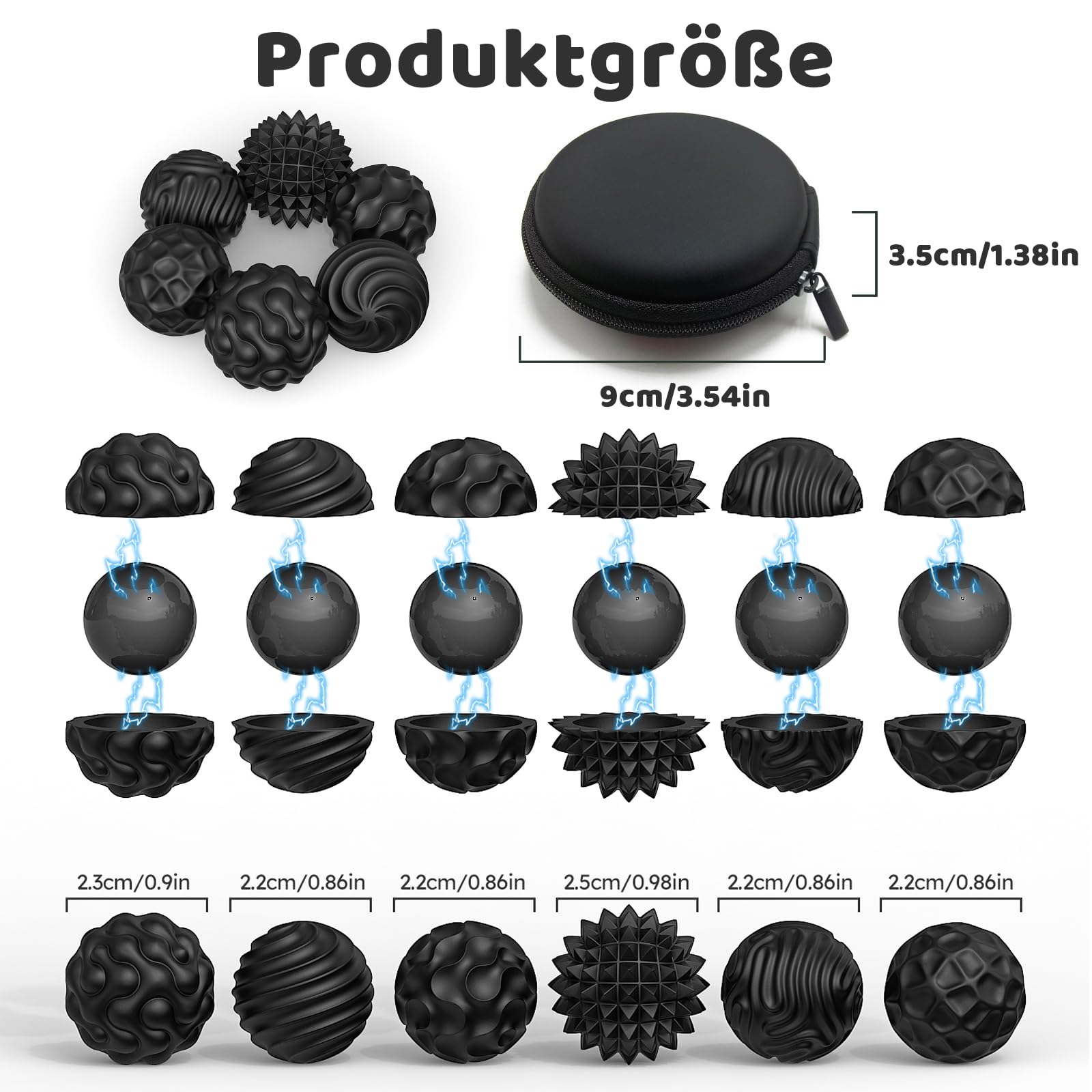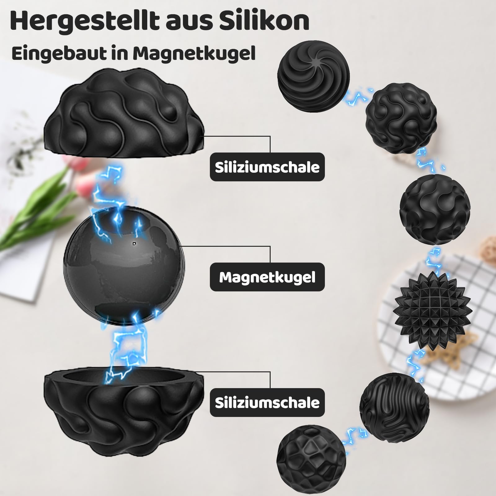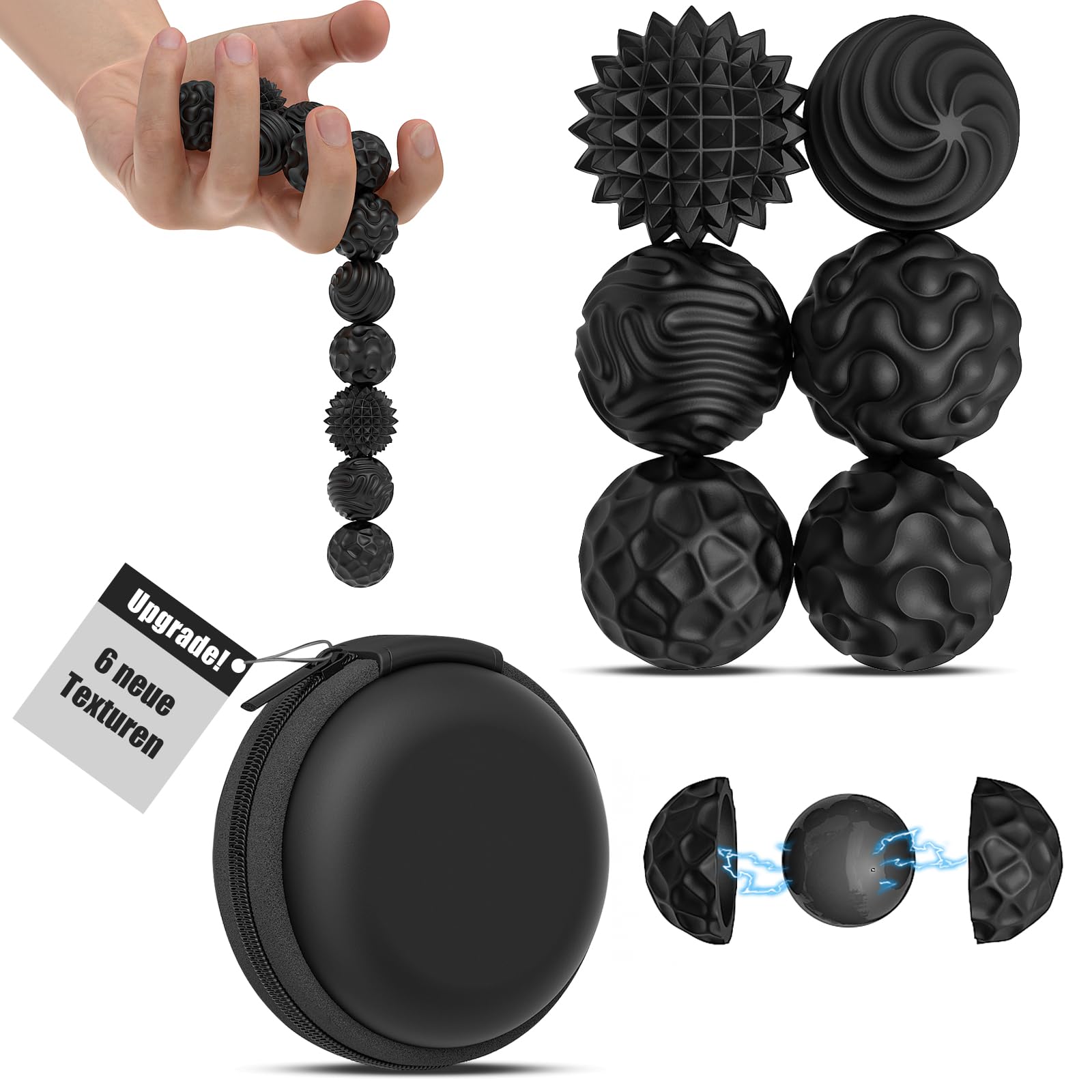6 Stück Magnetische Sensorik Bälle Kugeln, Magnetische Stressbälle Magnetkugeln Stressball aus Silikon, Sensorik Spielzeug Fidget Bälle mit 6 Texturen, Anti-Stress Spielzeug für Erwachsene (Schwarz)