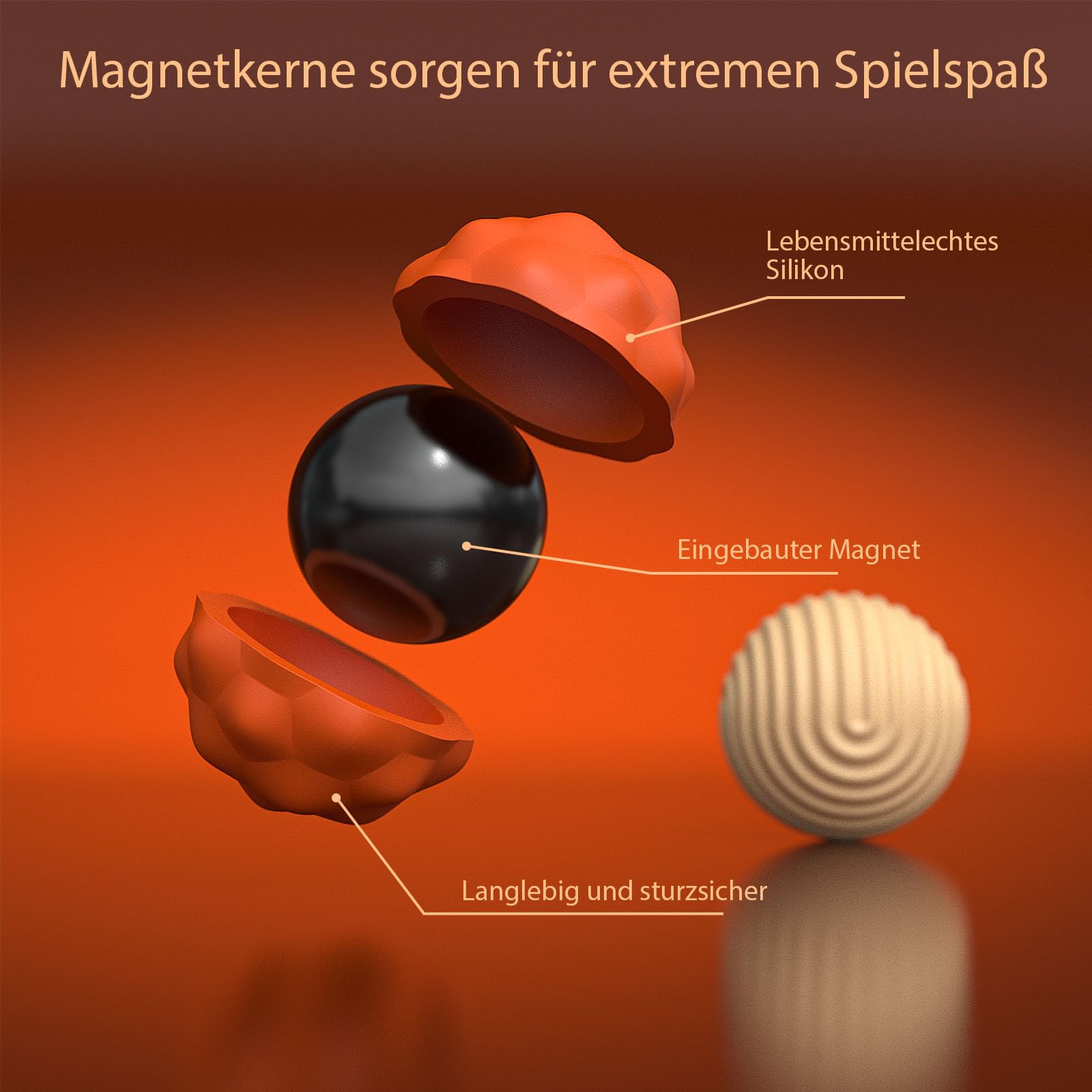 40,9 mm Extragrosses Magnetische Fidget Toys, 2 Stück Magnetkugeln Stressball Silikon Sensorik Spielzeug, Magnetische Anziehungskraft Stress Bälle mit Silikonhülle, Sensorisches Spielzeug