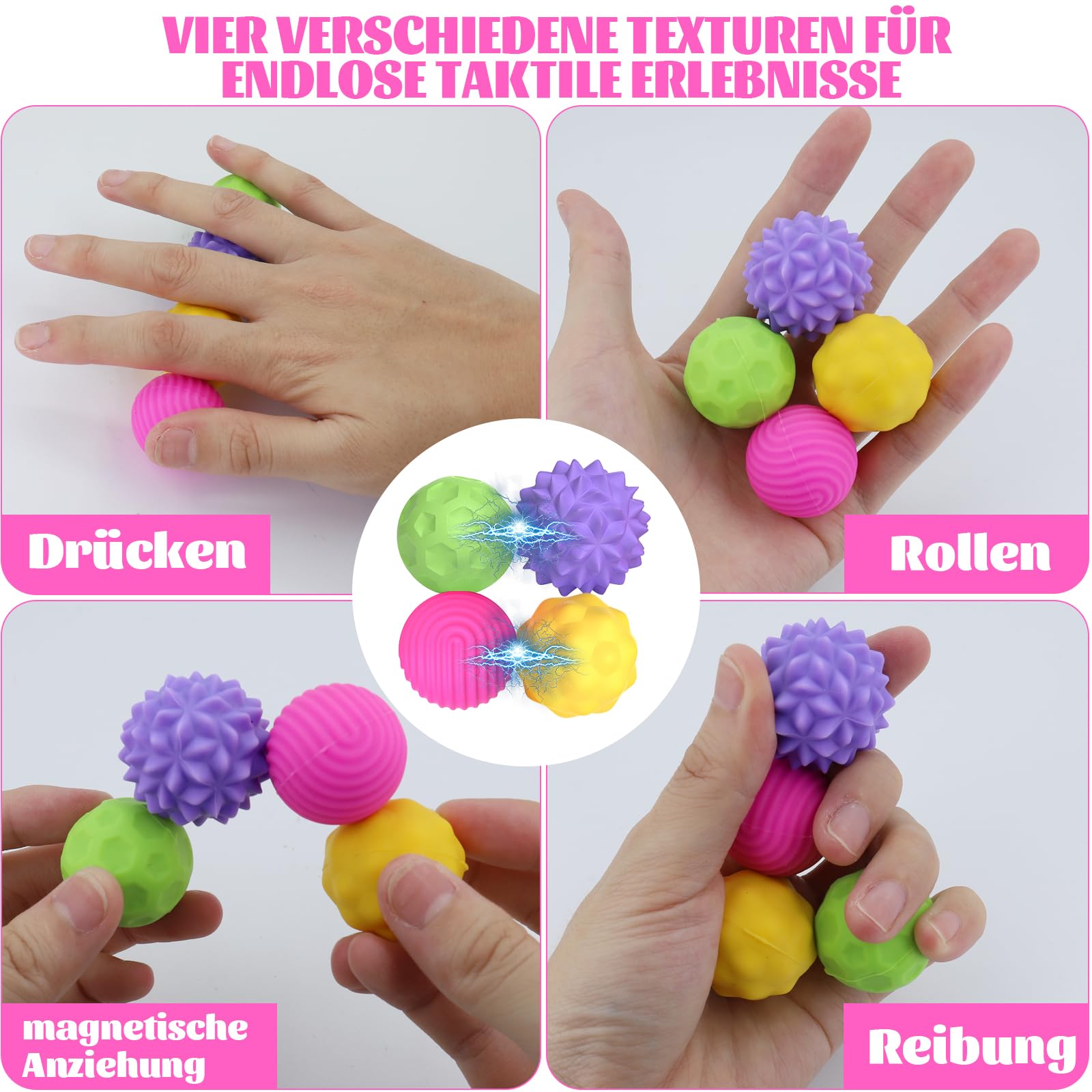 Farbe Magnetische Fidget Toys, Magnetische Anziehungskraft Stress Bälle mit Silikonhülle, Magnetkugeln Stressball Silikon Sensorik Spielzeug, Sensory Toy