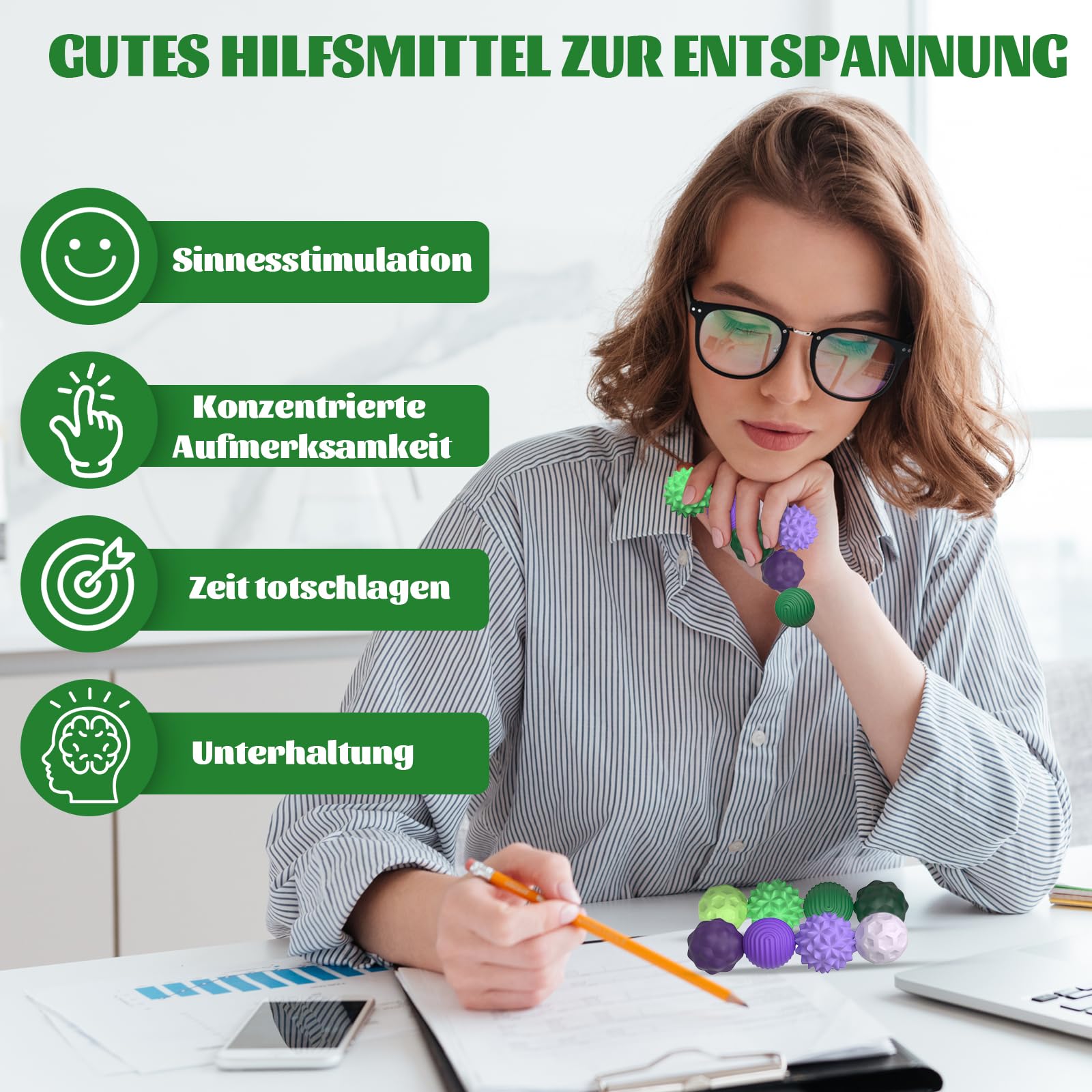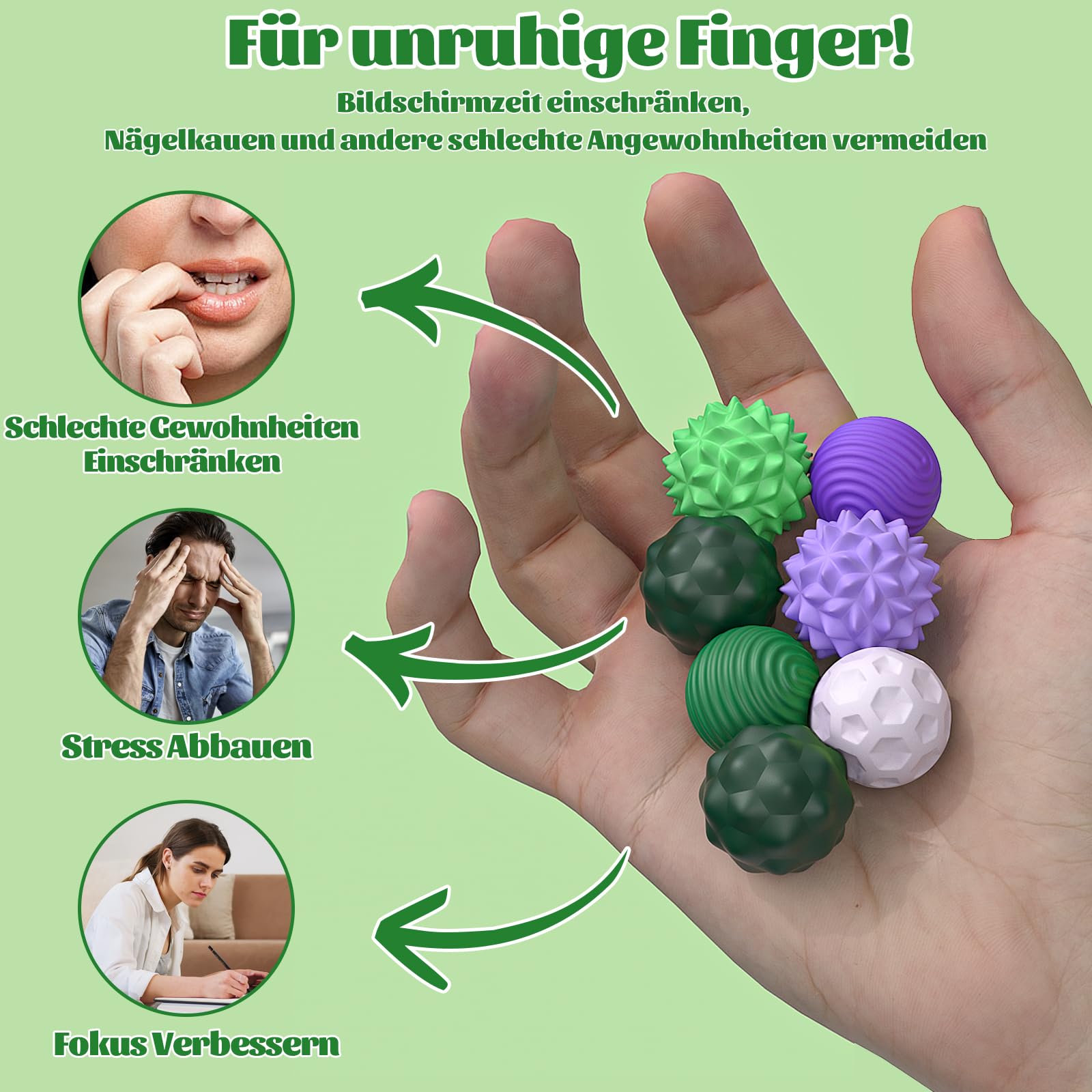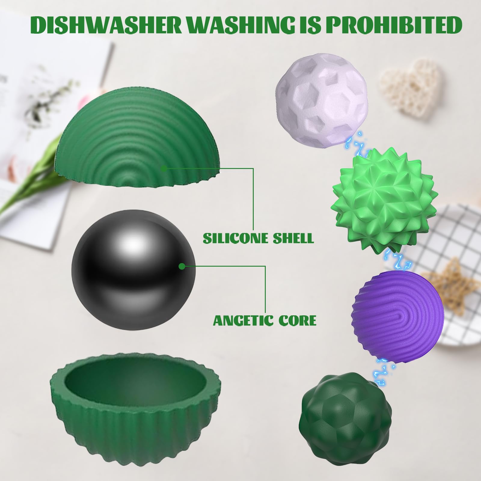 8 Stück Magnetische Fidget Toys, Magnetische Anziehungskraft Stress Bälle mit Silikonhülle, Magnetkugeln Stressball Silikon Sensorik Spielzeug, Sensory Toy ( Lila+Grün )