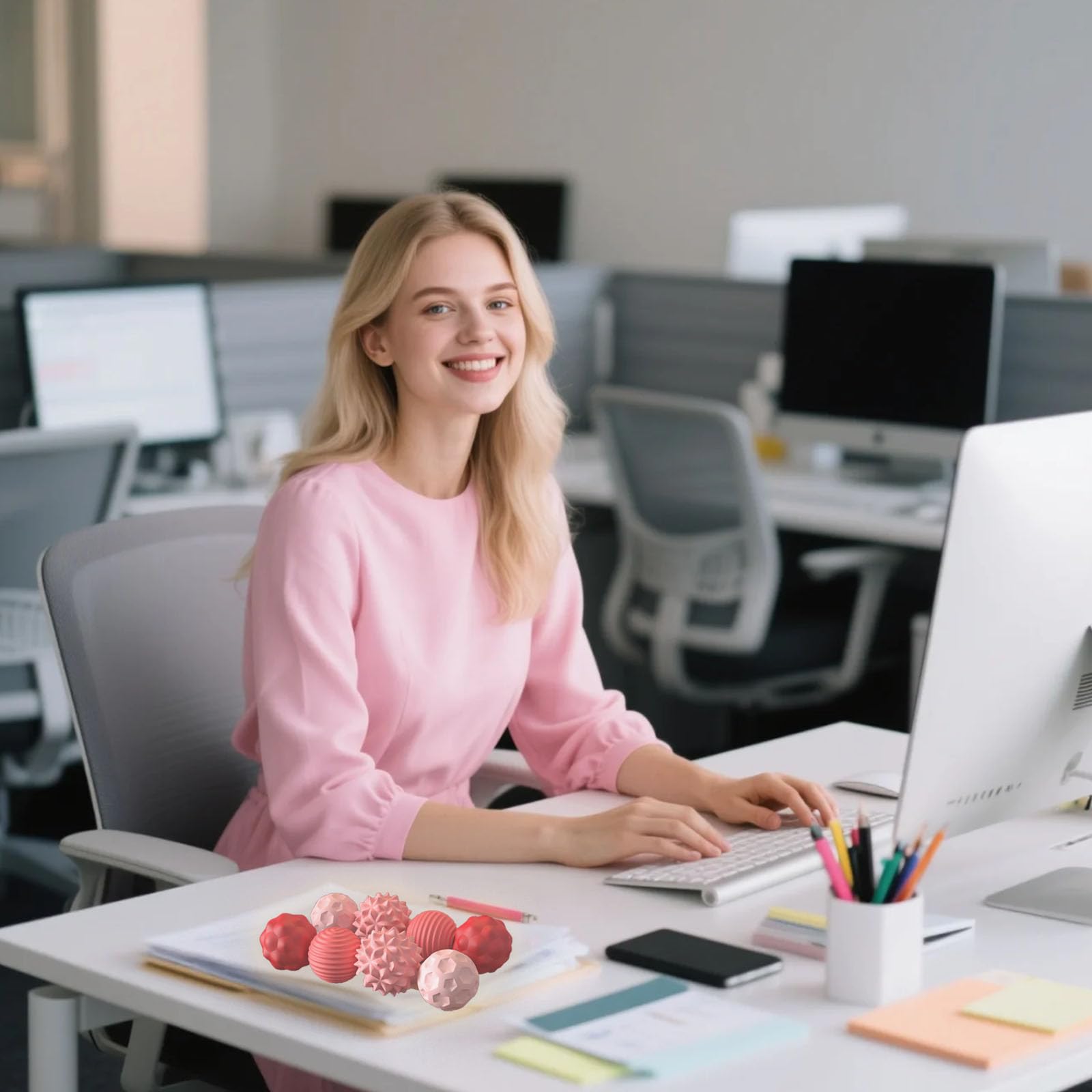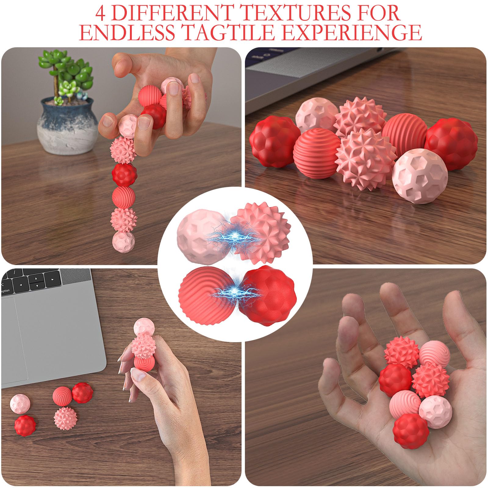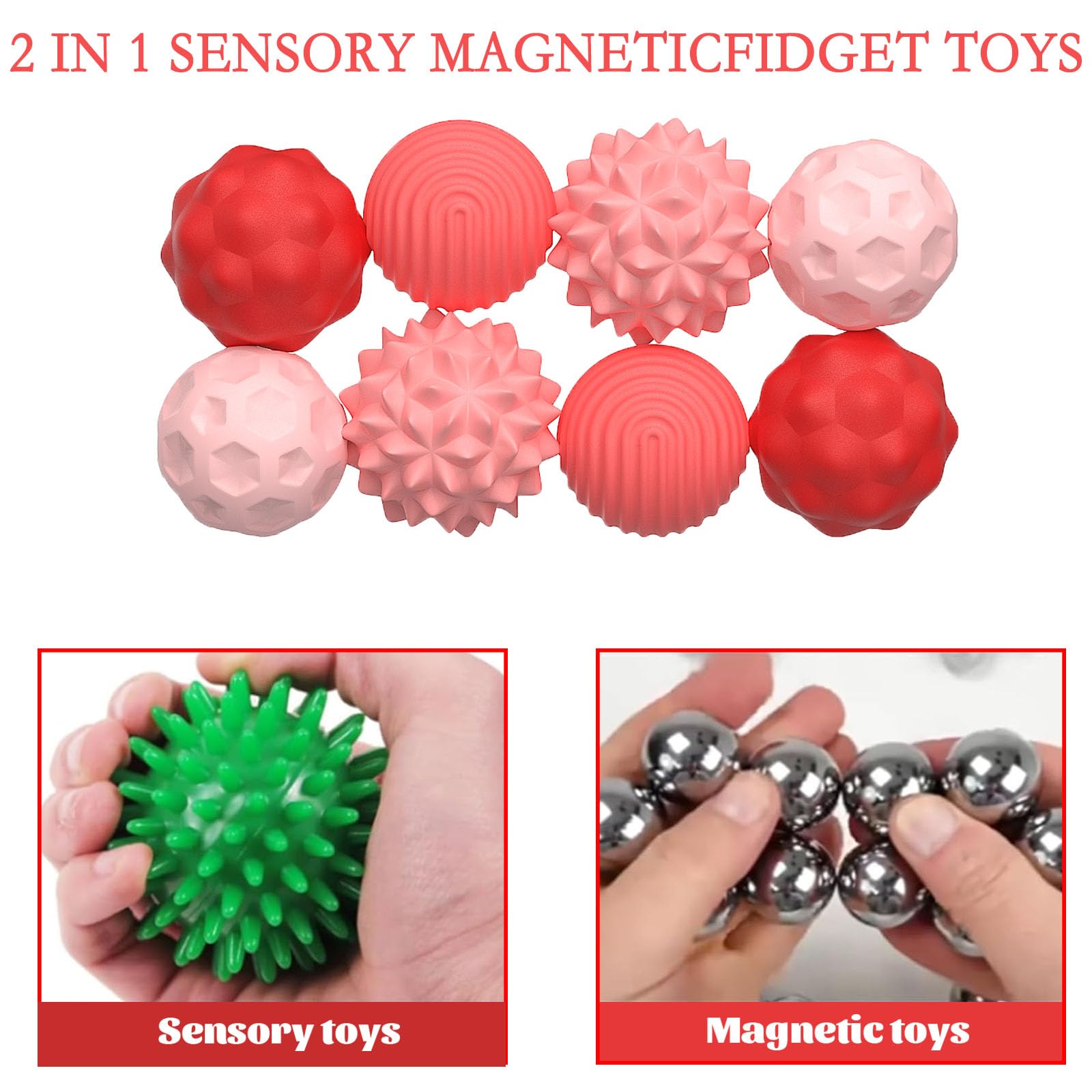 8 Stück Magnetische Fidget Toys, Magnetische Anziehungskraft Stress Bälle mit Silikonhülle, Magnetkugeln Stressball Silikon Sensorik Spielzeug, Sensory Toy ( Rosa )