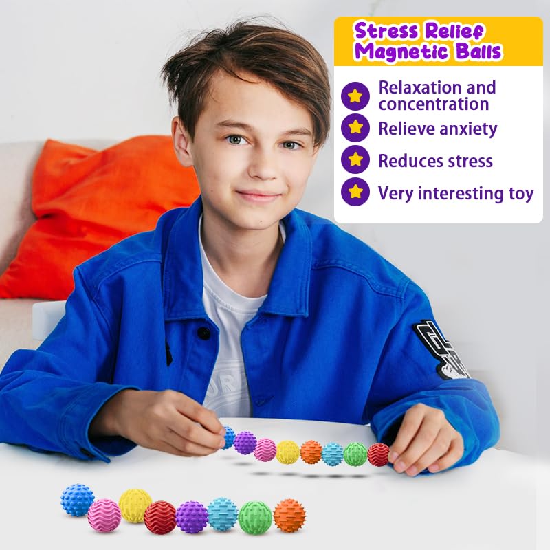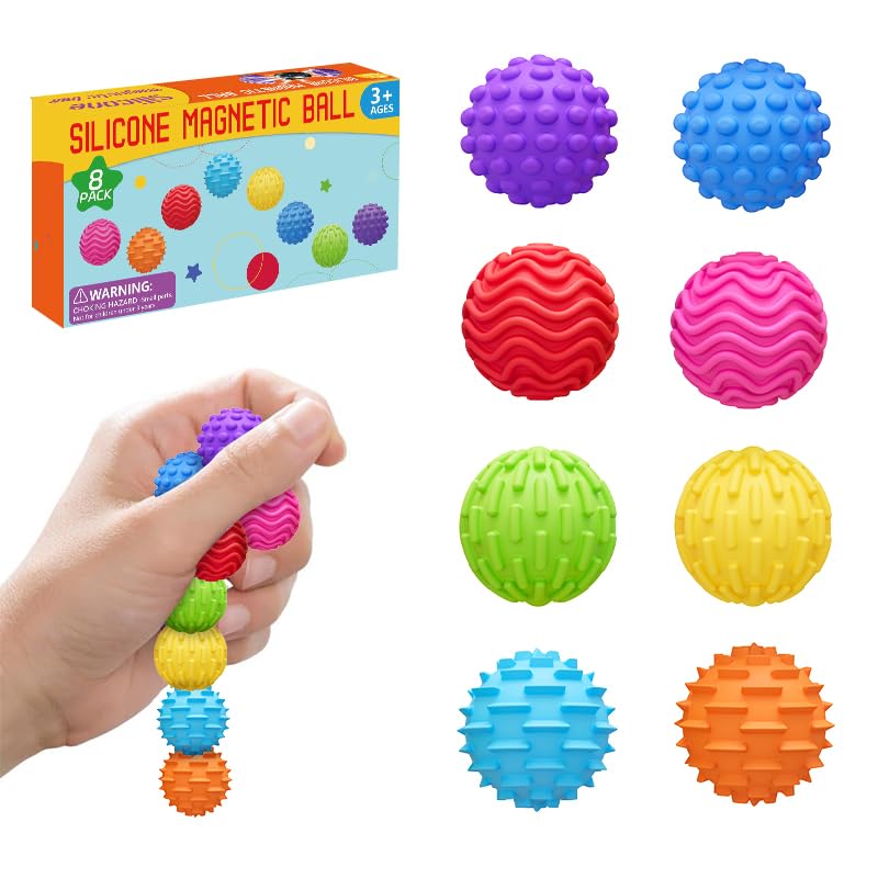 8 Stück Magnetische Fidget Toys Stressball - Anti-Stress Spielzeug, Magnetische Anziehungskraft Stress Bälle, Stressball für Kinder & Erwachsene, Magnetkugeln Stressball Silikon Sensorik Spielzeug