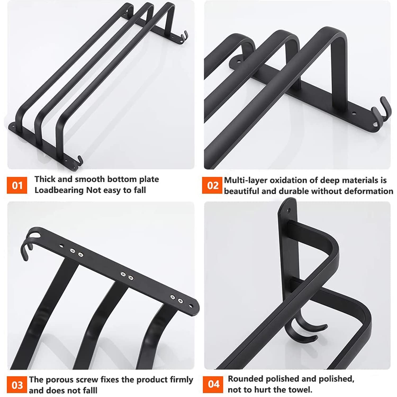 • Modernes Design: Die Oberfläche des badetuchhalter ist glatt und zart, leicht zu reinigen. Stilvolles und exquisites mattschwarzes Finish, das eine verbesserte Optik bietet. Diese towel holder sind alle ebenso schön wie funktional und das stilvolle Schwarz passt zu jeder Einrichtung.