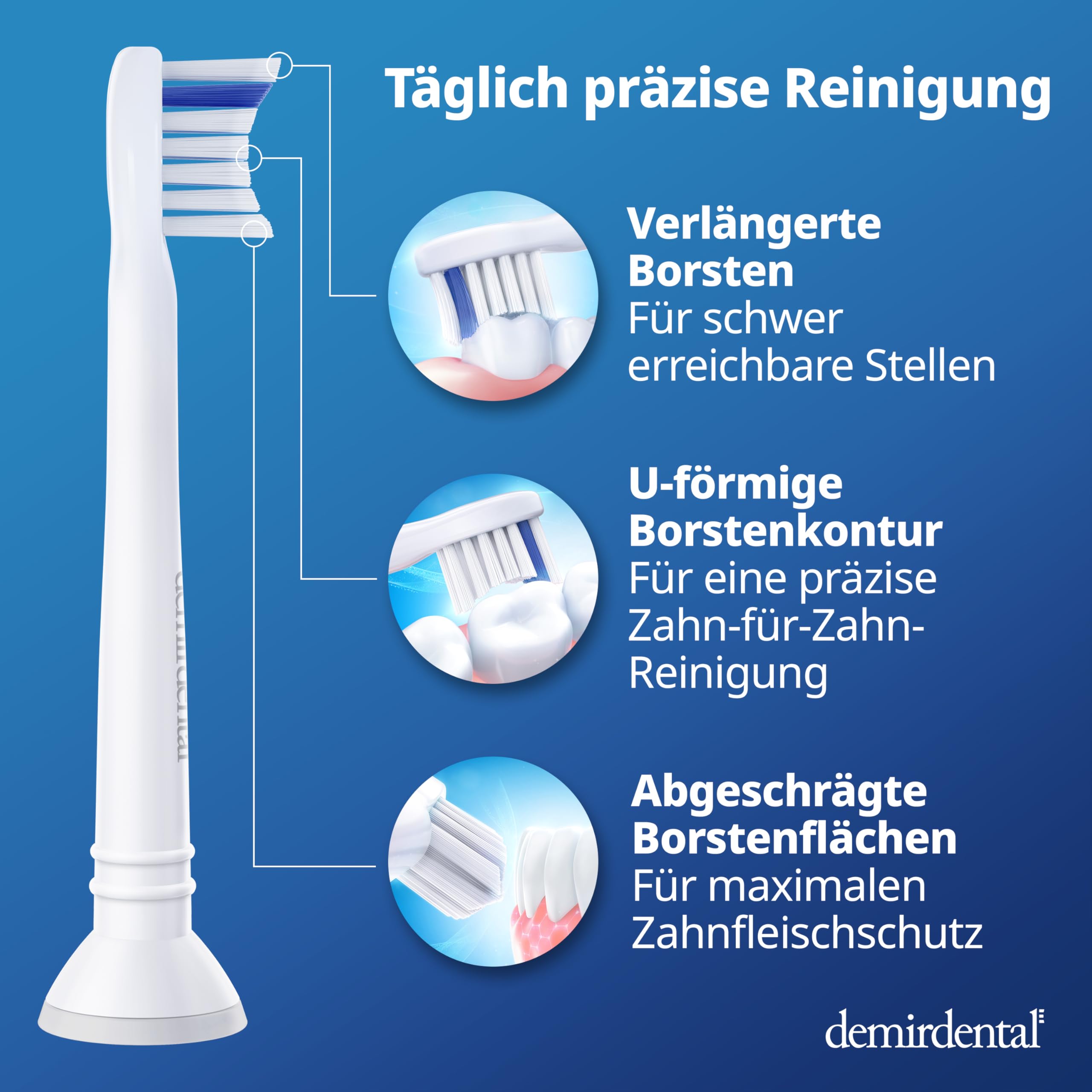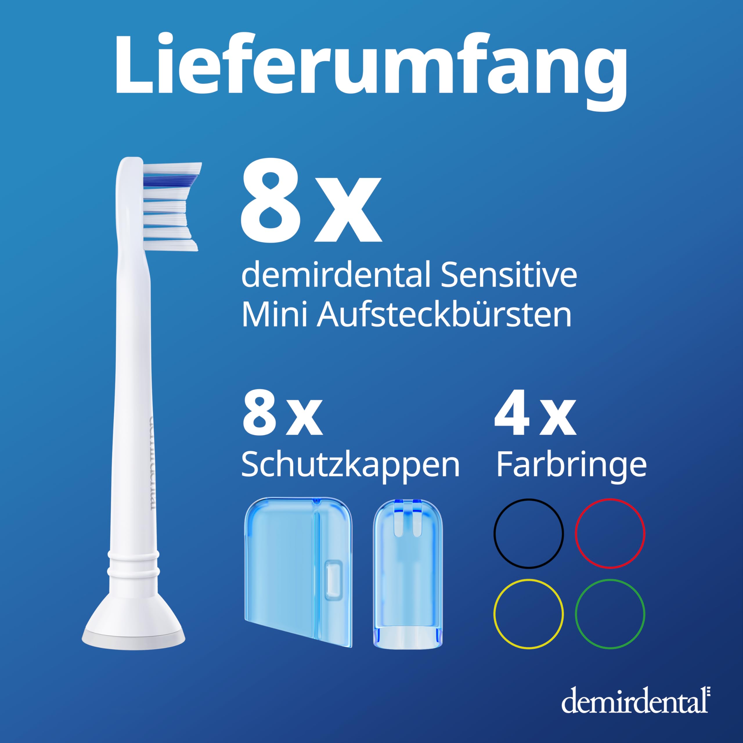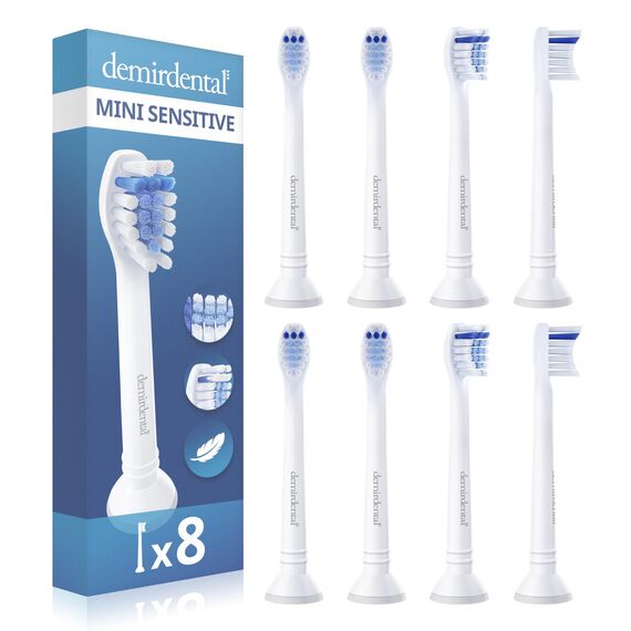 8er demirdental Mini Sensitive Aufsätze passend für Philips Sonicare Ersatzbürsten, weiche und kleine Bürstenköpfe für sensible Zähne, Weiss, entspricht HX6088