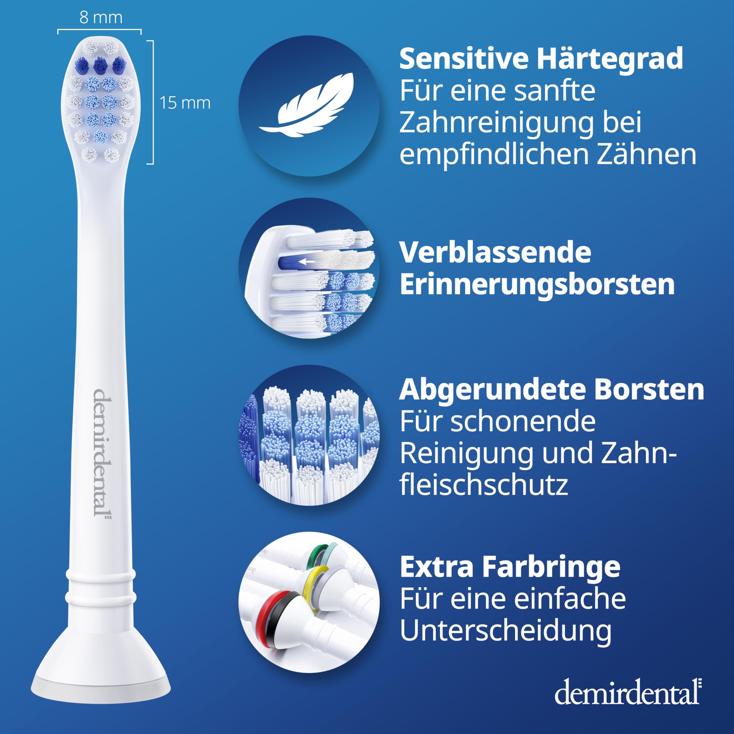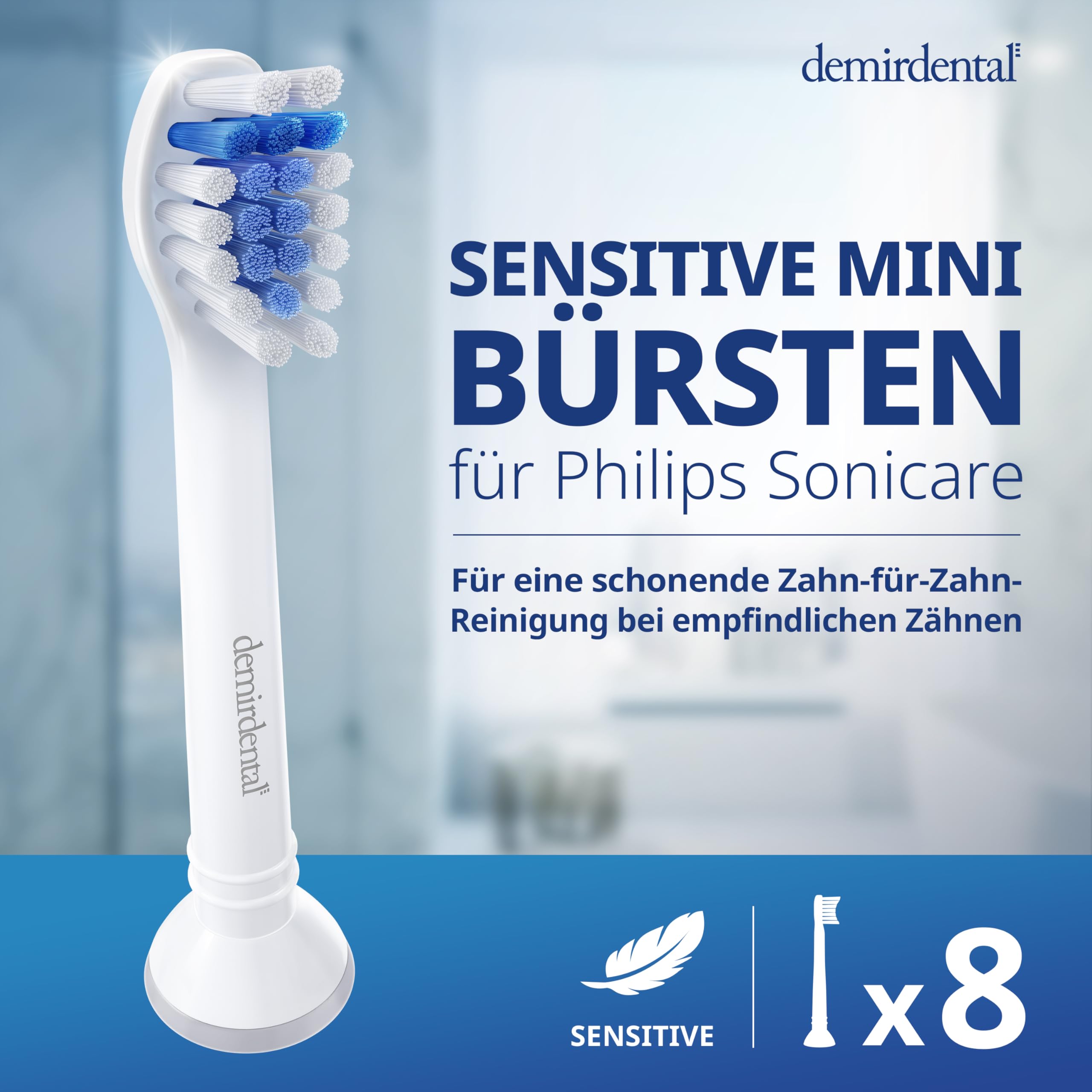 8er demirdental Mini Sensitive Aufsätze passend für Philips Sonicare Ersatzbürsten, weiche und kleine Bürstenköpfe für sensible Zähne, Weiss, entspricht HX6088