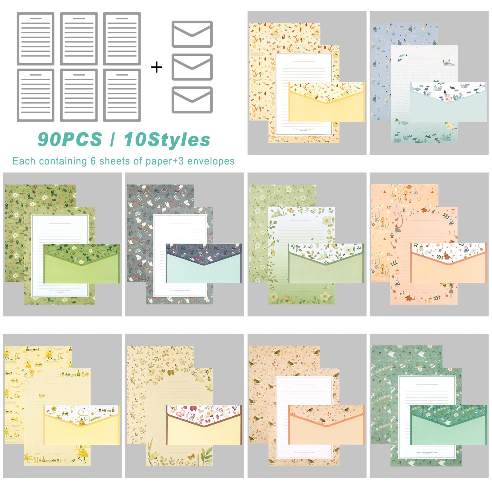 90 Stück Briefpapier mit Umschlag Set, 60 Briefpapier A5 mit 30 Briefumschläge, 10 Florale Stile Keine Tintenleckage Briefpapiere und Briefumschläge für Einladungskarten Glückwunschkarte