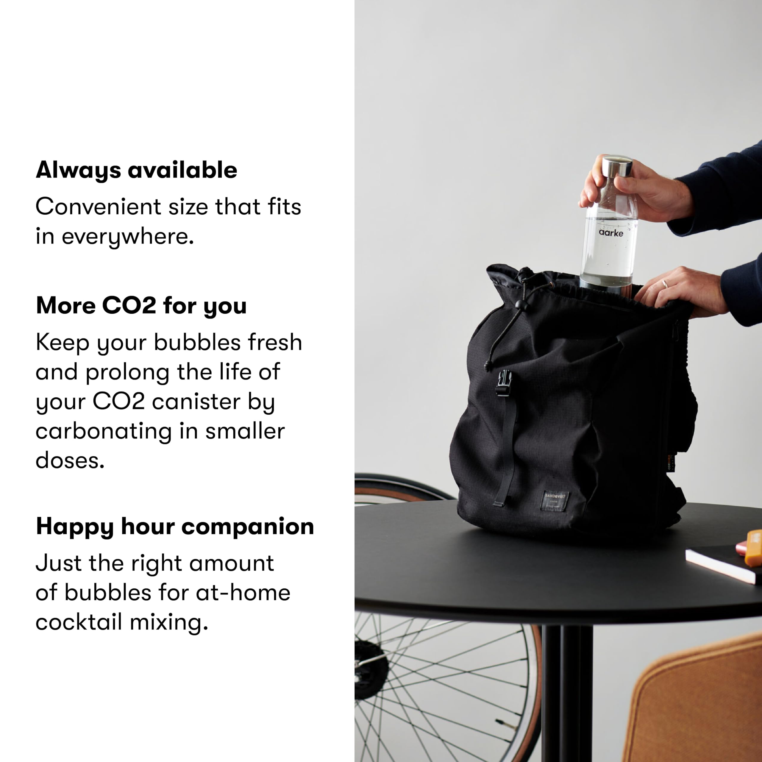 Lerne unsere Kleine PET-Wasserflasche kennen - mit dem gleichen zeitlosen Design wie das Original. Massgeschneidert für Einzelportionen und kleinere Haushalte. Mache das Beste aus dem Wassersprudeln daheim mit diesem stylishen Begleiter zum Carbonator 3. Ob auf der Küchenzeile oder im Fahrradkorb, beim Kaffeetrinken oder zum Mixen von Cocktails, die Kleine PET-Wasserflasche ist immer griffbereit.
