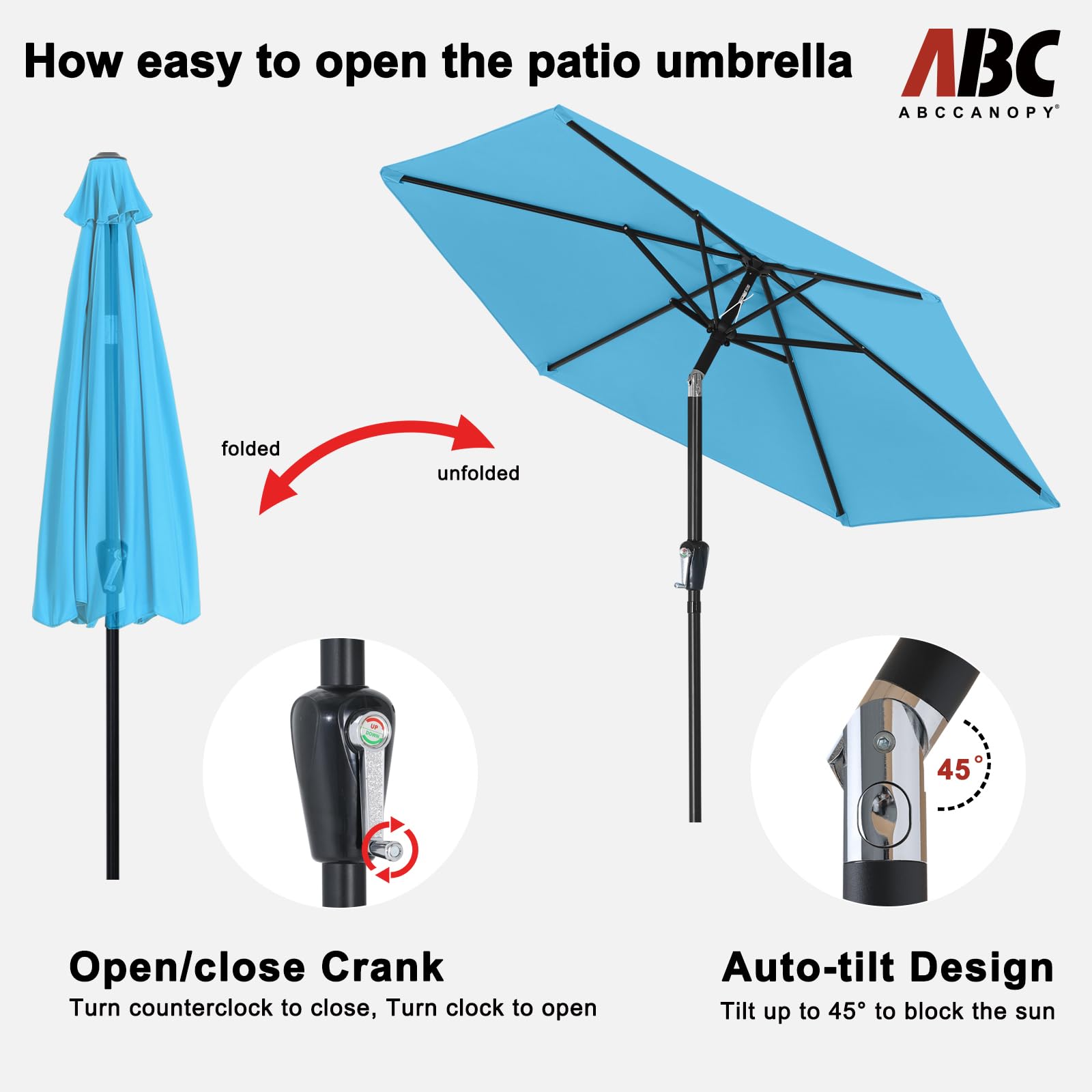 ABCCANOPY 230cm Sonnenschirm im Freien Wasserabweisende Bespannung -Gartenschirm Marktschirm,türkis
