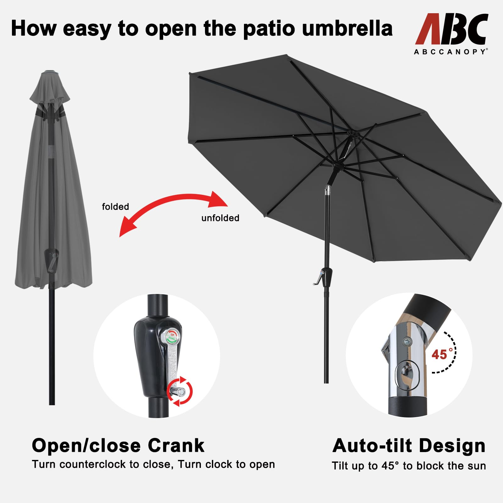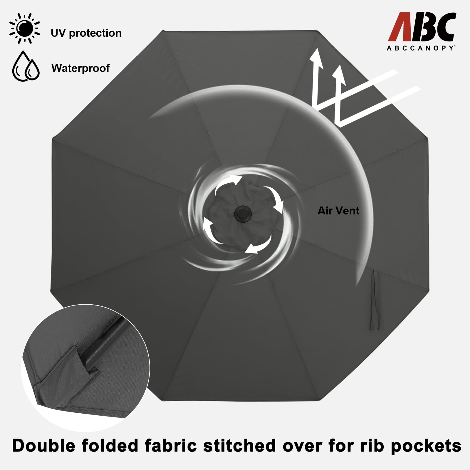 ABCCANOPY 230cm Sonnenschirm im Freien Wasserabweisende Bespannung -Gartenschirm Marktschirm,dunkel grau