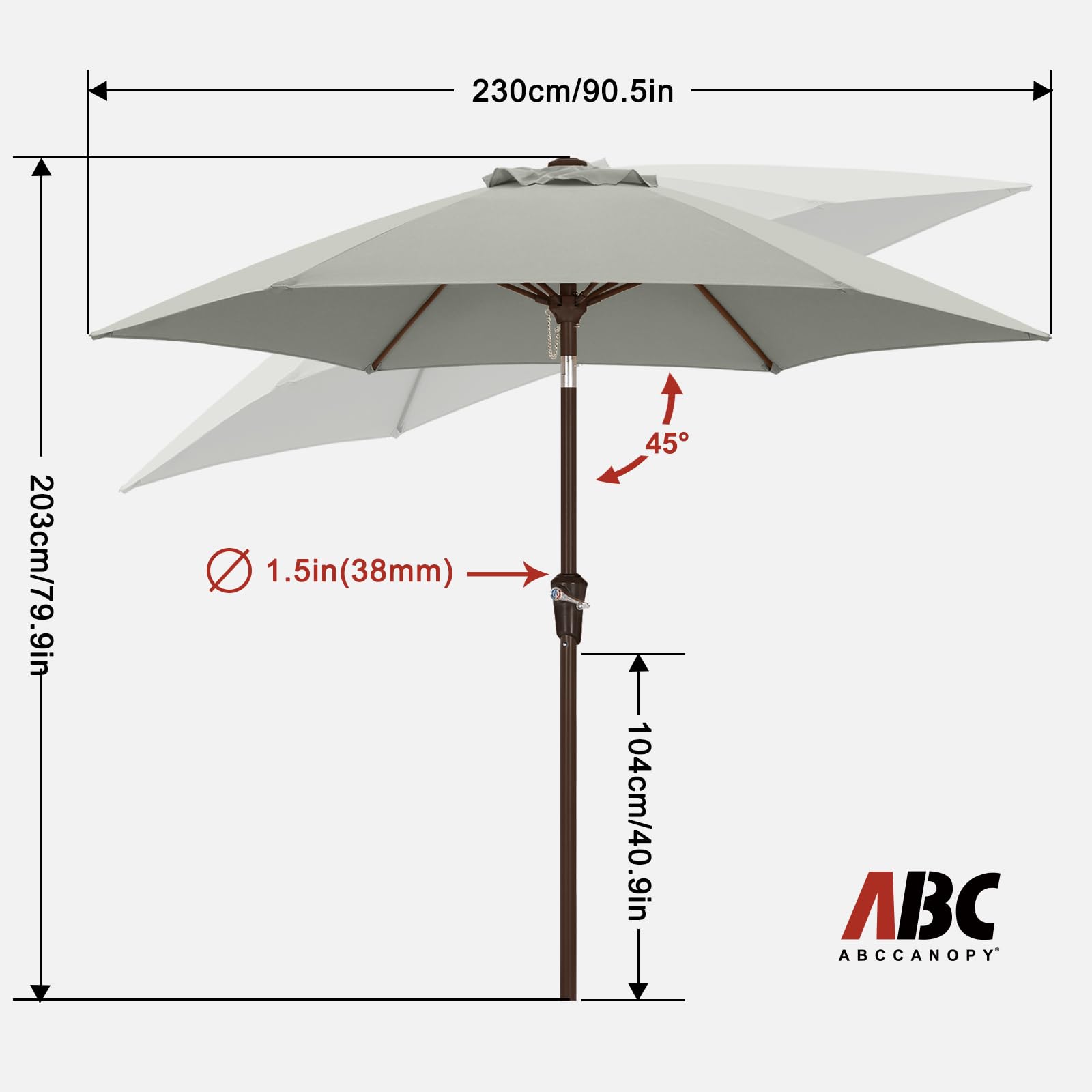 ABCCANOPY 230cm Sonnenschirm im Freien Wasserabweisende Bespannung -Gartenschirm Marktschirm,hellgrau