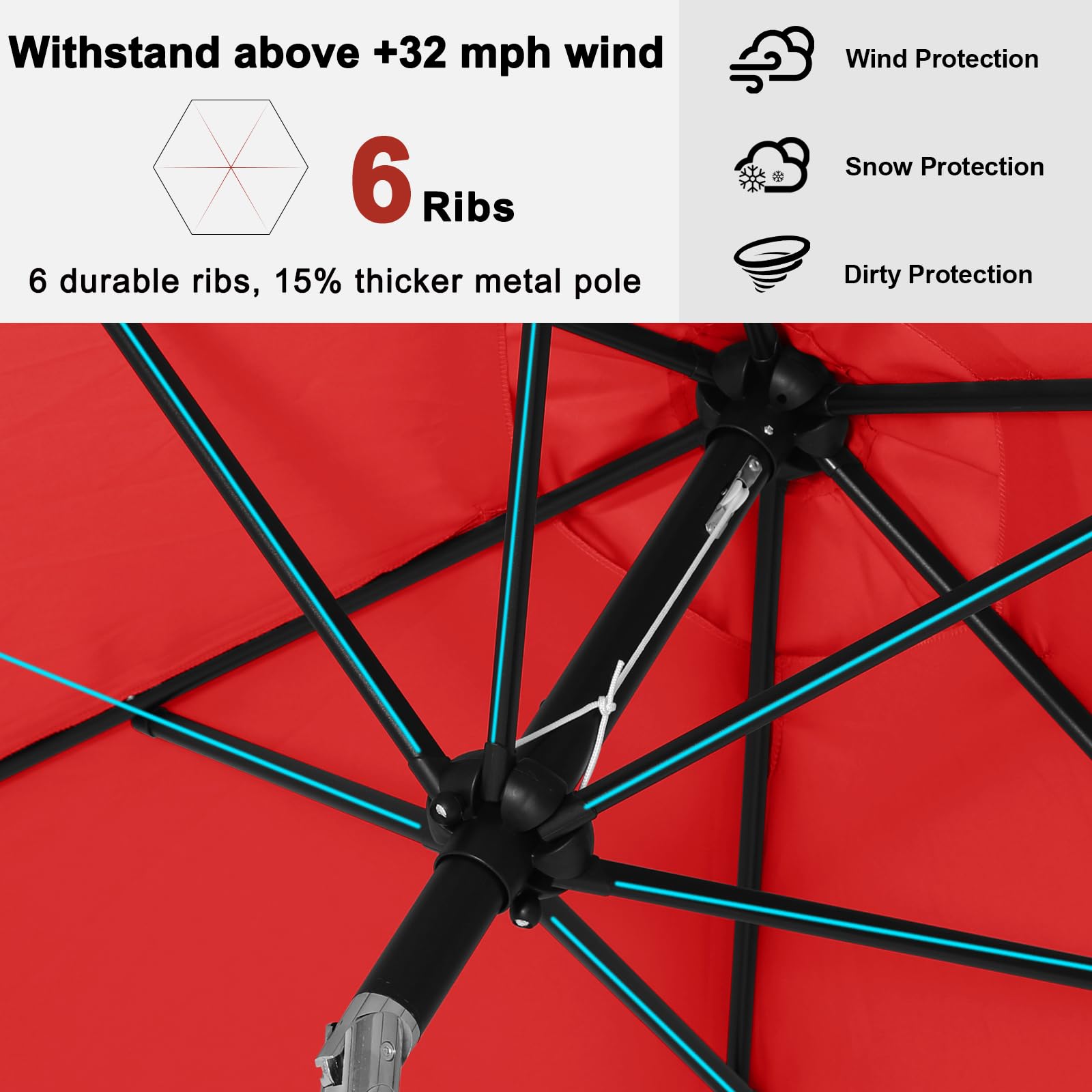 ABCCANOPY 2,5 m Outdoor-Terrassenschirm, UV-Schutz, Tischschirm mit Kurbel für einfachen Aufbau, geeignet für Garten, Rasen, Terrasse und Hinterhof (rot)