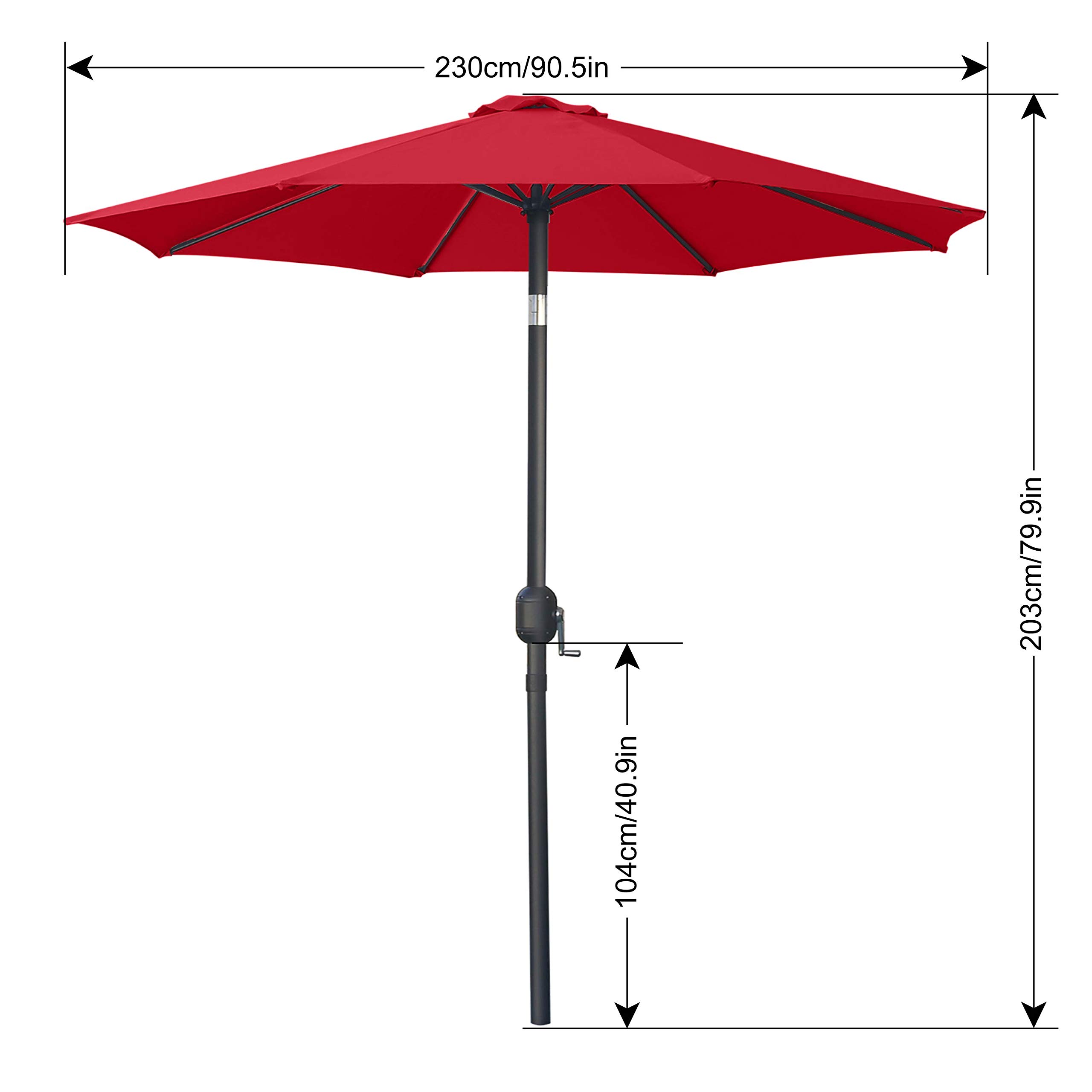 ABCCANOPY 230cm Sonnenschirm im Freien Wasserabweisende Bespannung -Gartenschirm Marktschirm,Rot