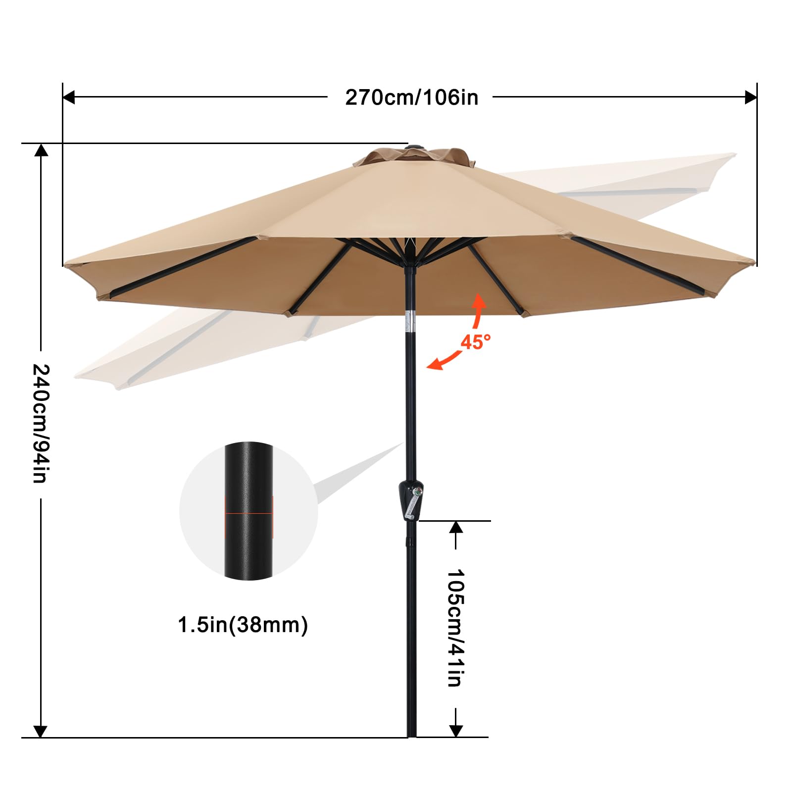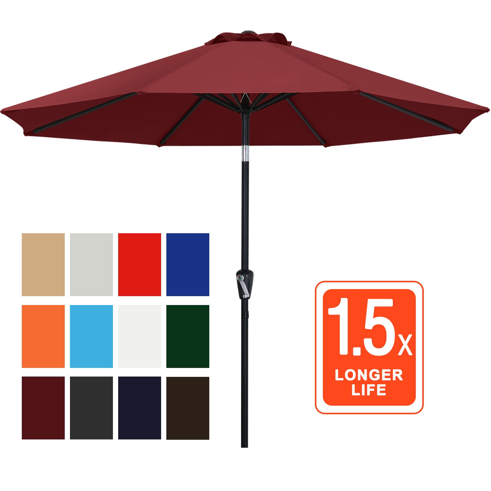 Abccanopy Sonnenschirm 228 cm, 274 cm, 305 cm mit Druckknopf für Garten, Terrasse, Hinterhof und Pool, 6 Rippen, 13+ Farben 10FT burgunderfarben