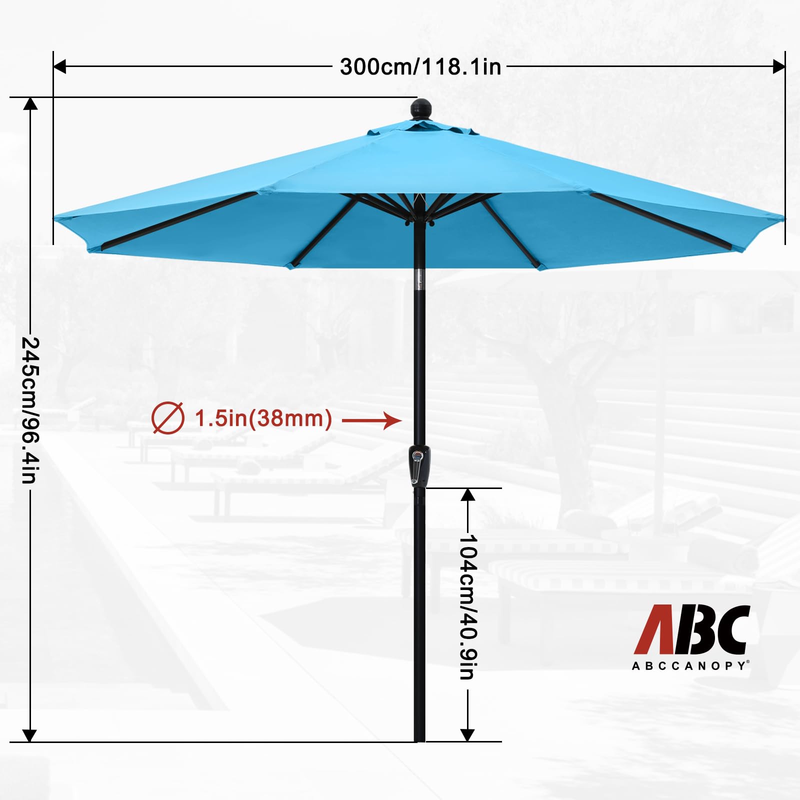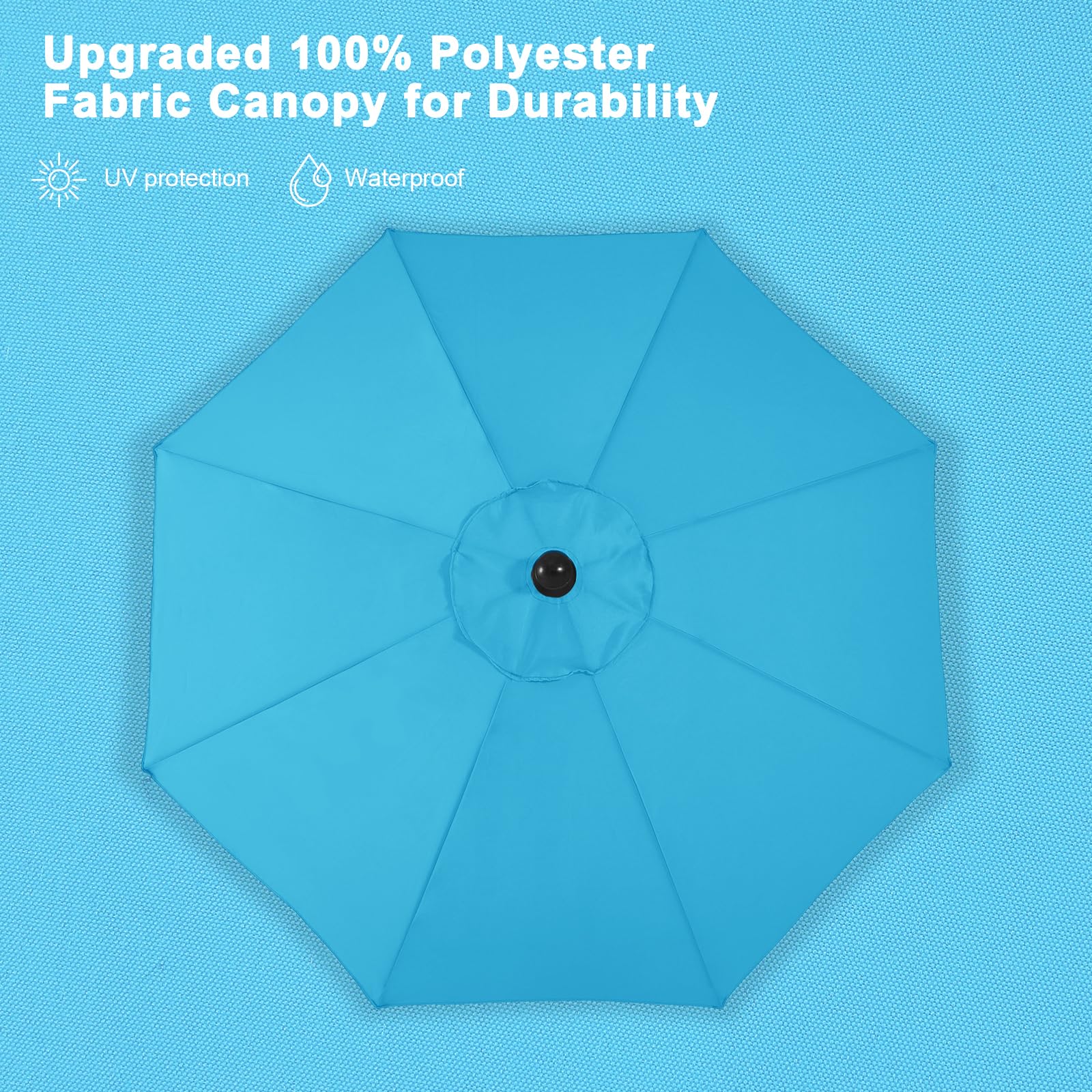 Abccanopy Sonnenschirm 228 cm, 274 cm, 305 cm mit Druckknopf für Garten, Terrasse, Hinterhof und Pool, 6 Rippen, 13+ Farben 10FT türkis