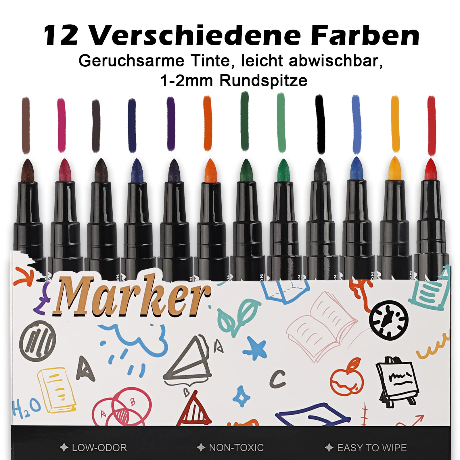 ABEIER Whiteboard Marker, schwamm Whiteboard stifte,Magnetisch Whiteboard Marker Schwamm mit Stiften, Trocken Abwischbar, Rundspitze 1-2mm, Perfekt für Zuhause Schule Büro12er Pack