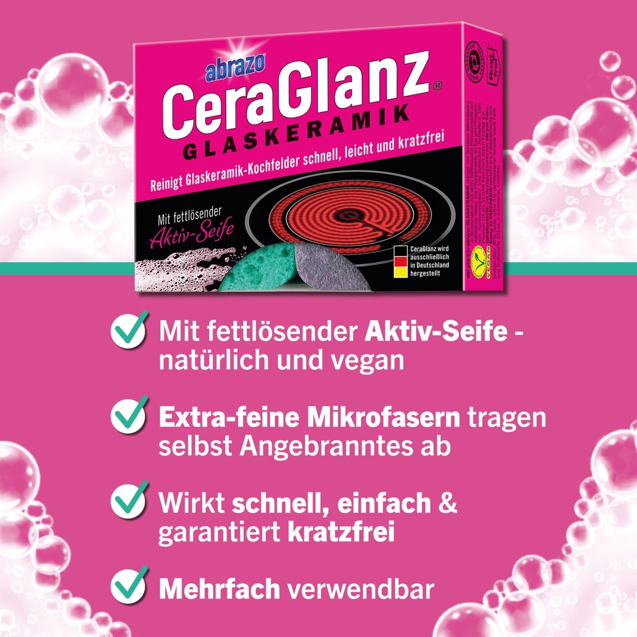 abrazo CeraGlanz Glaskeramik - 12 Glaskeramikfeldreiniger 6x2 Stk. - Glaskeramik Reiniger, Keramikfeld Reiniger, Herdreiniger, Herd kratzfrei reinigen