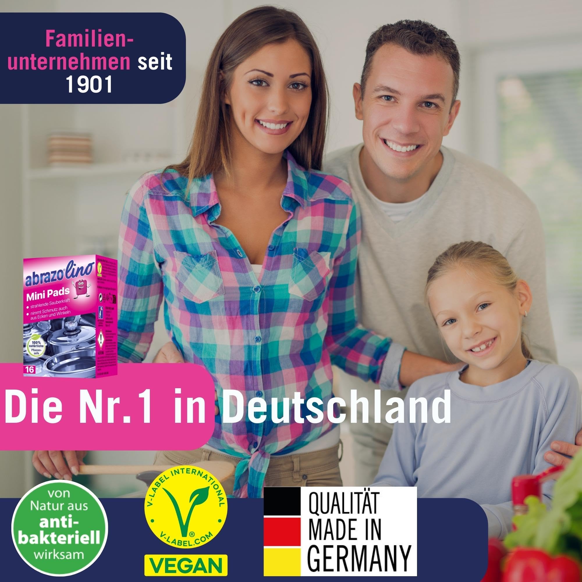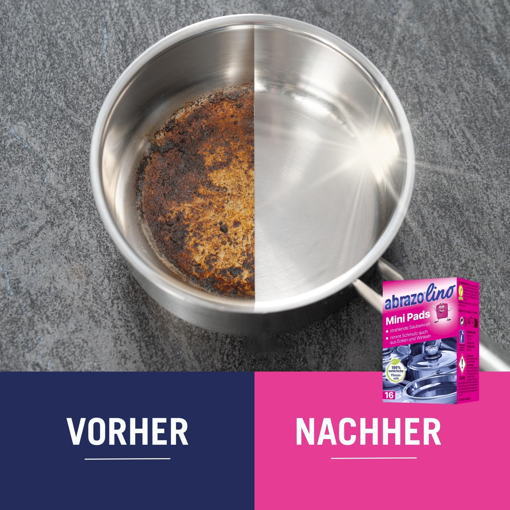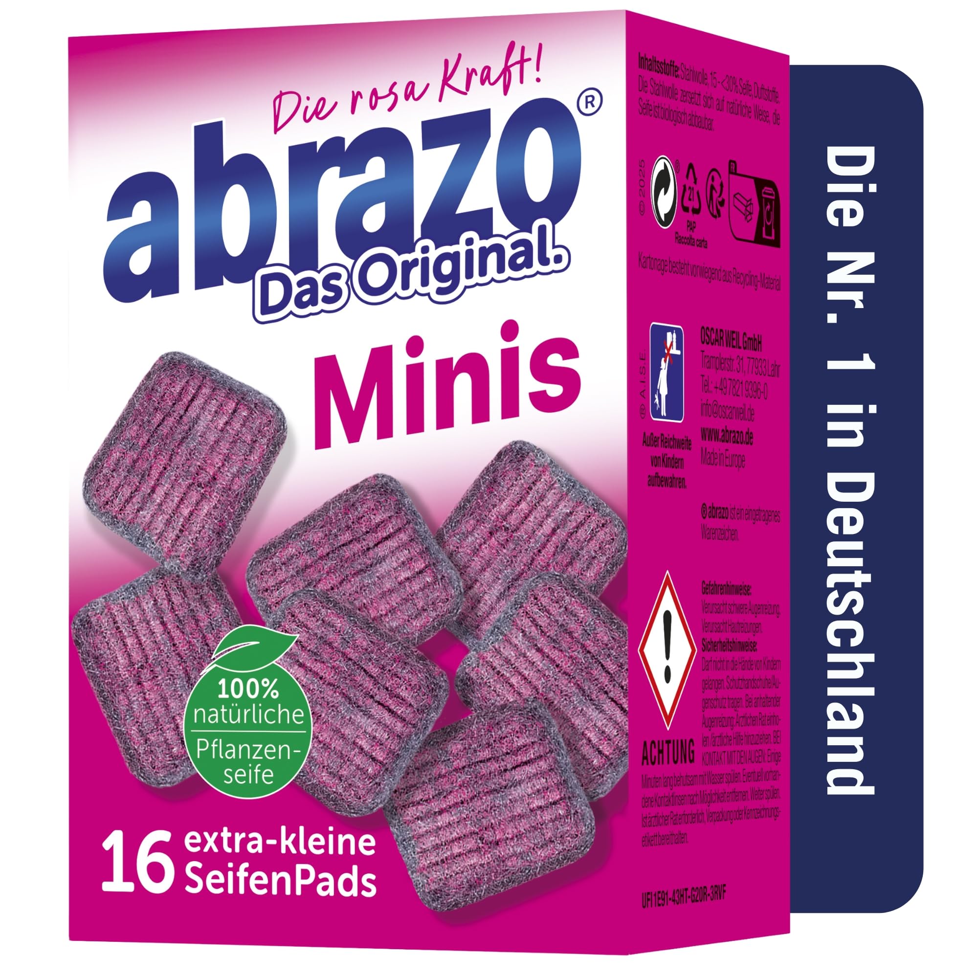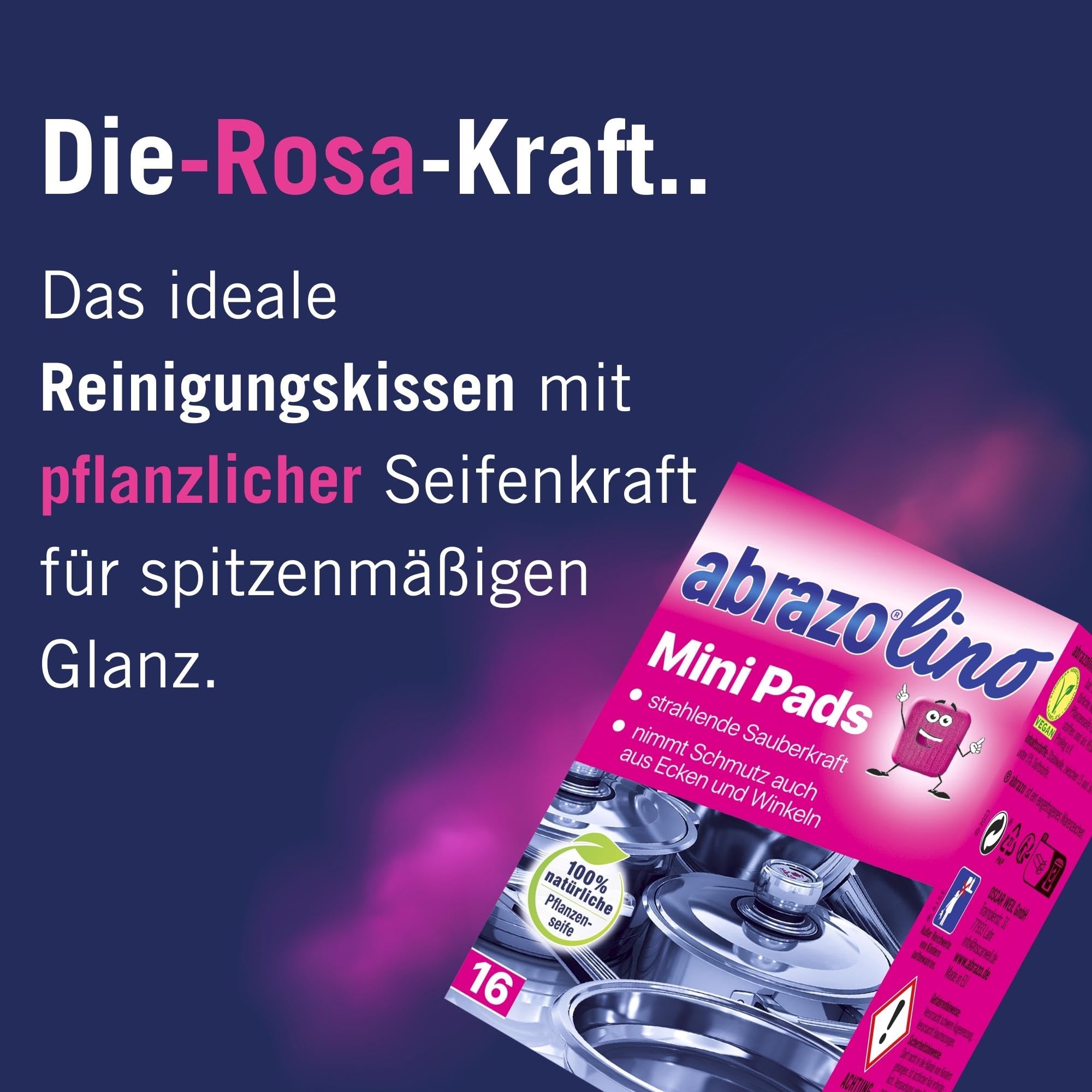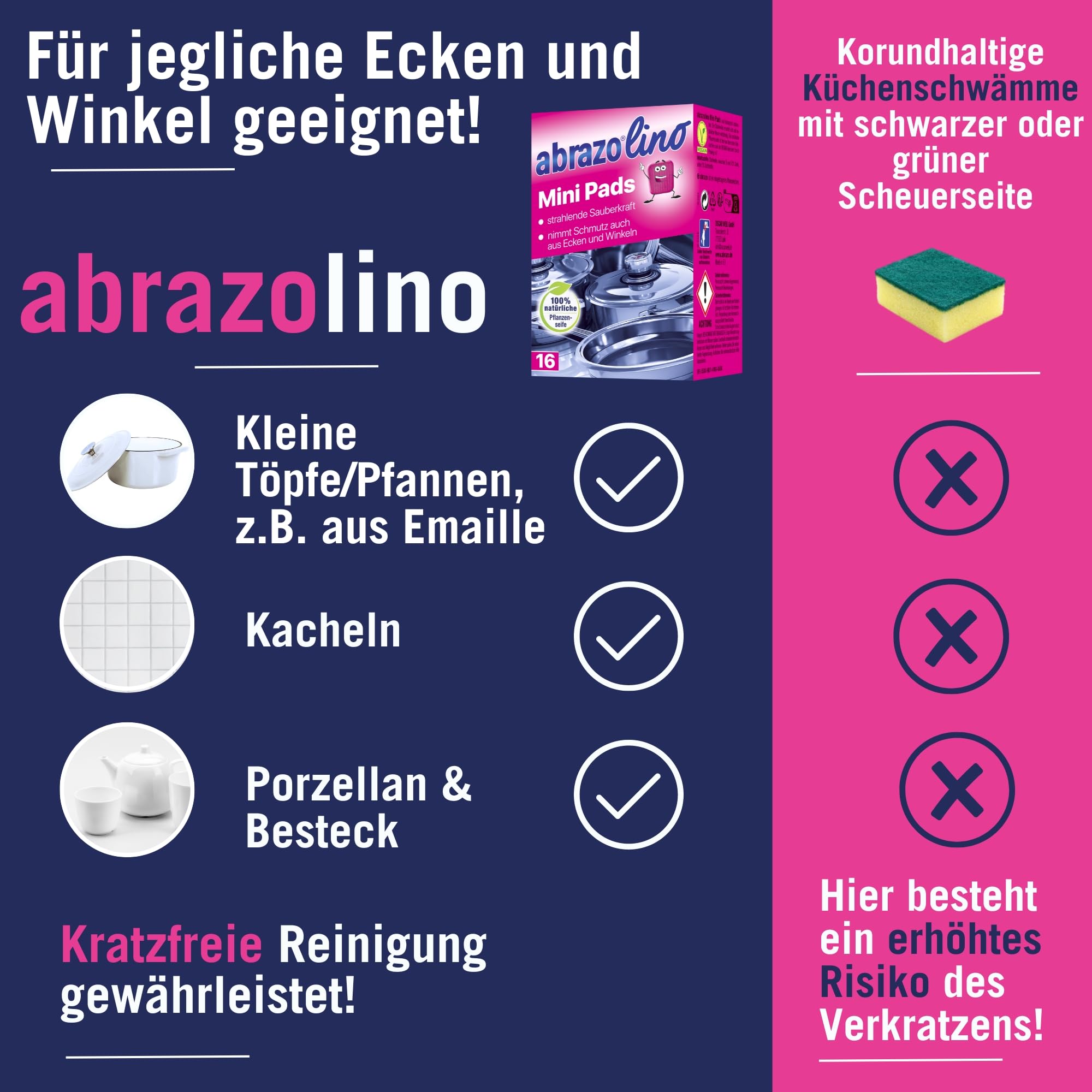 abrazo Minis - 16 Reinigungskissen für Töpfe, Grill, Backofen, handlicher Spülschwamm mit Veganer Pflanzenseife, Küchenschwamm, Reinigungsschwamm