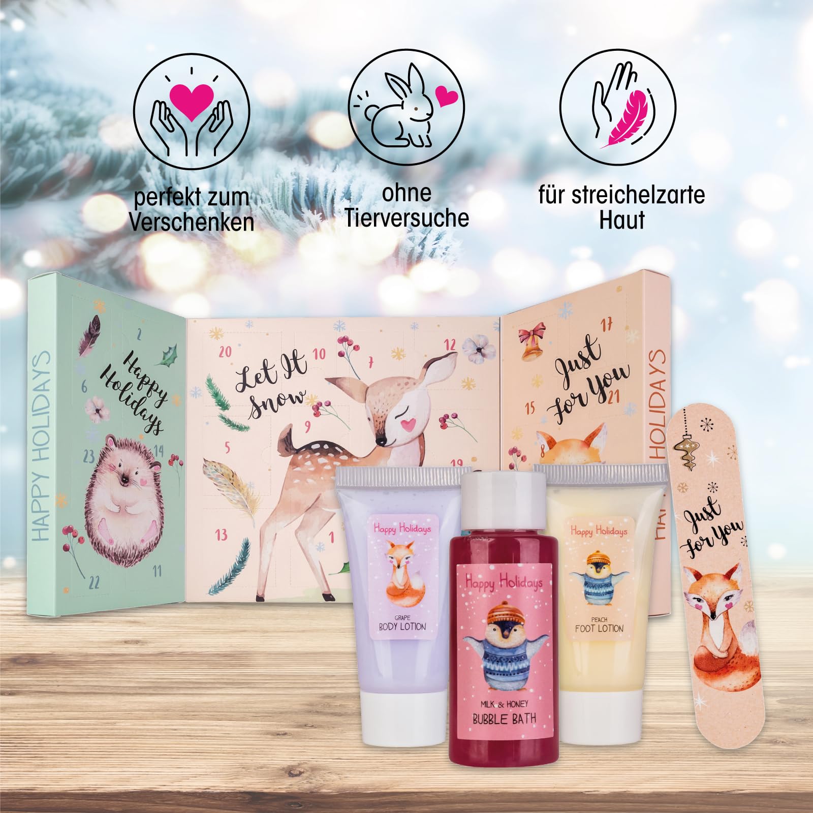 Accentra Pflege Adventskalender 2025 für Kinder, Adventskalender für Mädchen mit 24 Pflegeprodukten - Beauty mit Bodylotion, Badebomben, Duschgel, Shampoo, Handcreme uvm. Weihnachtskalender Teenager