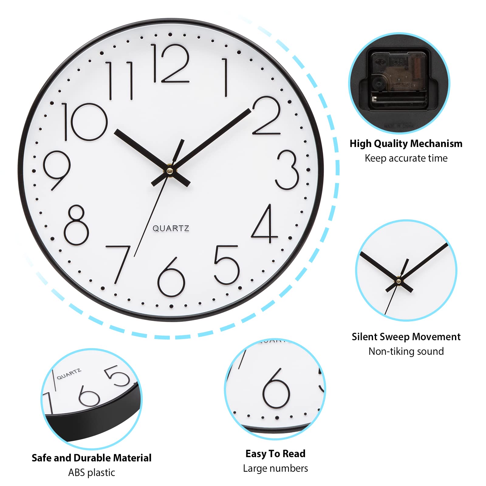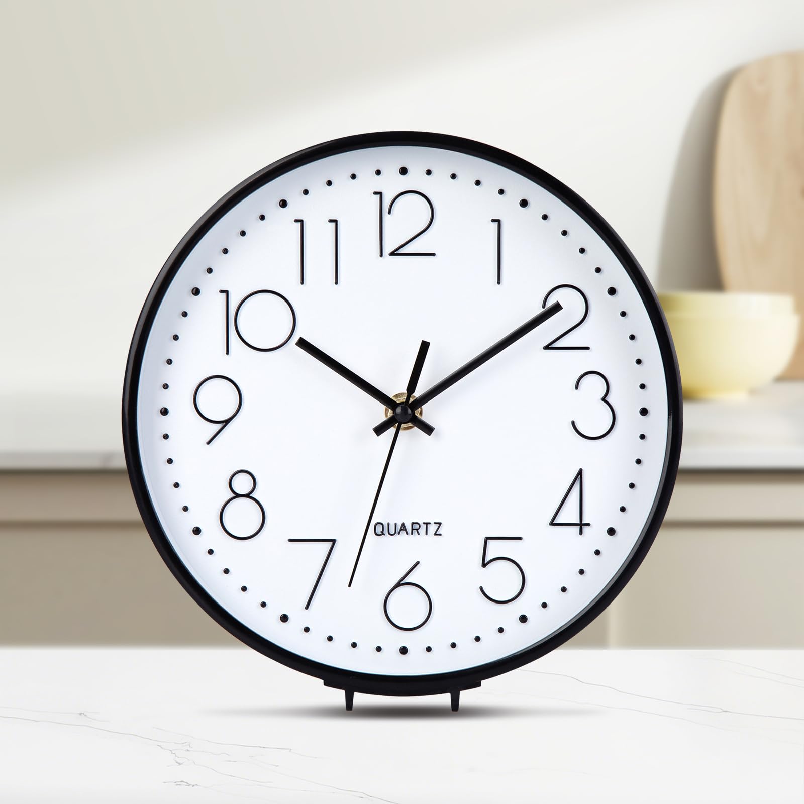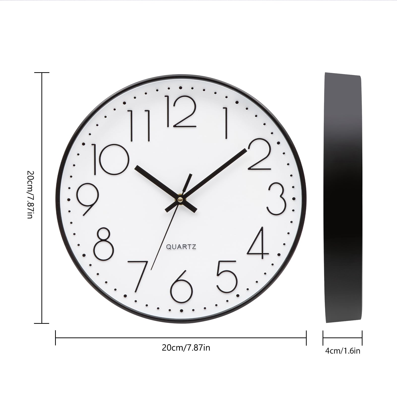 Brand: ACCSHINE Die Vorteile dieser kleinen 8-Zoll-Wanduhr (Durchmesser ca. 20 cm) sind wie folgt: 1. Kompakt und platzsparend: Sie ist kleiner als 10-Zoll- und 12-Zoll-Uhren und nimmt weder als Wanduhr an der Wand noch als Tischuhr auf dem Tisch viel Platz ein. 2. Gut lesbar: Die Ziffern auf dem Zifferblatt sind dreidimensional und gross gestaltet, sodass sie auch für ältere Menschen und Kinder aus einer Entfernung von 3–4 Metern gut lesbar sind. 3. Geräuscharmes Uhrwerk: Ausgestattet mit einem Quarz-Sekundenzeiger-Uhrwerk, sodass man nachts im Schlafzimmer kein Ticken hört. 4. Leicht und einfach zu installieren: Die gesamte Uhr wiegt etwa 300 g und kann mit Hilfe von rückstandsfreien Nägeln auch von Frauen leicht an der Wand befestigt werden, ohne grosse Nagellöcher zu hinterlassen. Empfohlene Einsatzorte: Kopfende des Bettes im Schlafzimmer: So kann man morgens nach dem Aufwachen die Uhrzeit leicht ablesen, ohne das Handy einschalten zu müssen. Kinderzimmer: Die 8-Zoll-Wanduhr mit Cartoon-Motiv hilft Kindern, ein Zeitgefühl zu entwickeln, ohne dass sie sich den Kopf daran stossen können. Küche, Esszimmer: Das öl- und wasserabweisende Kunststoffgehäuse lässt sich leicht abwischen und reinigen. Kleines Büro/Arbeitszimmer: Hängen Sie eine Uhr neben den Computer oder an die Trennwand, damit Sie sie im Blick haben und effizienter arbeiten können.
