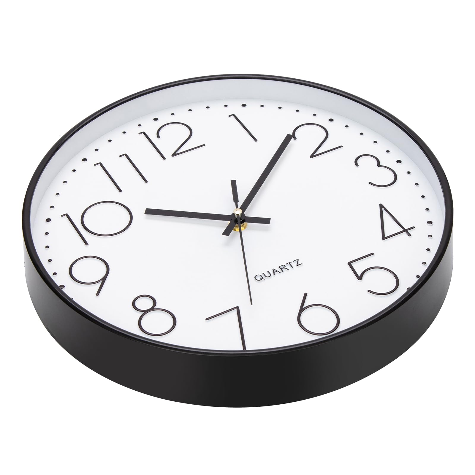Brand: ACCSHINE Moderne Wanduhr aus Kunststoff & Glas – 30 cm, lautlos, kindersicher – perfekt für Küche, Wohnzimmer & Kinderzimmer Endlich Zeit ohne Tick-Tack: Dank des geräuscharmen Quarzwerks bleibt diese Wanduhr ohne Tickgeräusche 100 % lautlos – ideal als Küchenuhr, Wanduhr Wohnzimmer oder Wanduhr Kinderzimmer, wenn Ruhe beim Kochen, Spielen oder Schlafen gefragt ist. Produkt-Details auf einen Blick Gehäuse: hochwertiger, recyclebarer Kunststoff-Rahmen (ABS) in seidenmatter Premium-Optik – leicht und stossfest. Front: echtes, kratzfestes Glas für klare Sicht und langanhaltende Brillanz – keine vergilbende Kunststoff-Scheibe. Grösse: 30 cm Ø, 4 cm Tiefe – die beliebte Wanduhr gross, die jeden Raum sofort modern aufwertet. Design: schlichte, moderne Minimallinien mit 12 mm hohen, gold arabischen Ziffern – auch aus 6 m Entfernung perfekt ablesbar. Zeiger: kontraststarke Metallzeiger → zusätzliche Ruhe und reduziertes Wall-Clock-Design. Kindersicher & energieeffizient Das robuste Glas bricht nicht so leicht wie herkömmliches Fensterglas; das ABS-Material ist BPA-frei und lässt sich mit einem feuchten Tuch abwischen. Eine einzelne AA-Batterie (nicht im Lieferumfang) reicht für bis zu 18 Monate – sparsam und umweltfreundlich. Montage in 60 Sekunden mehr braucht eine moderne Wanduhr nicht. Einsatzorte Küche: Hitzebeständiger Kunststoff, leicht zu reinigen Wohnzimmer: dezentes Schwarz-Gold-Design Geeignet für alle minimalistischen und modernen Wohnzimmerstile Kinderzimmer: lautloses Uhrwerk & unzerbrechliches Glas → sicher für Kleinkinder