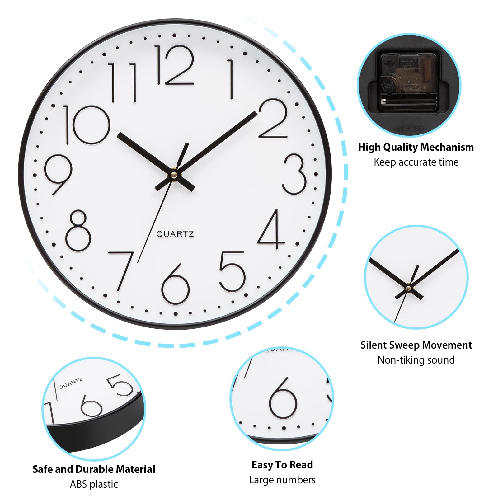 ACCSHINE Wanduhr Ohne Tickgeräusche Lautlos Küchenuhr 30cm Quarz Gross Batterie Betriebene Wanduhr Einfach zu Lesen für Zimmer Zuhause Wohnzimmer KüChe Schlafzimmer Büro Schule