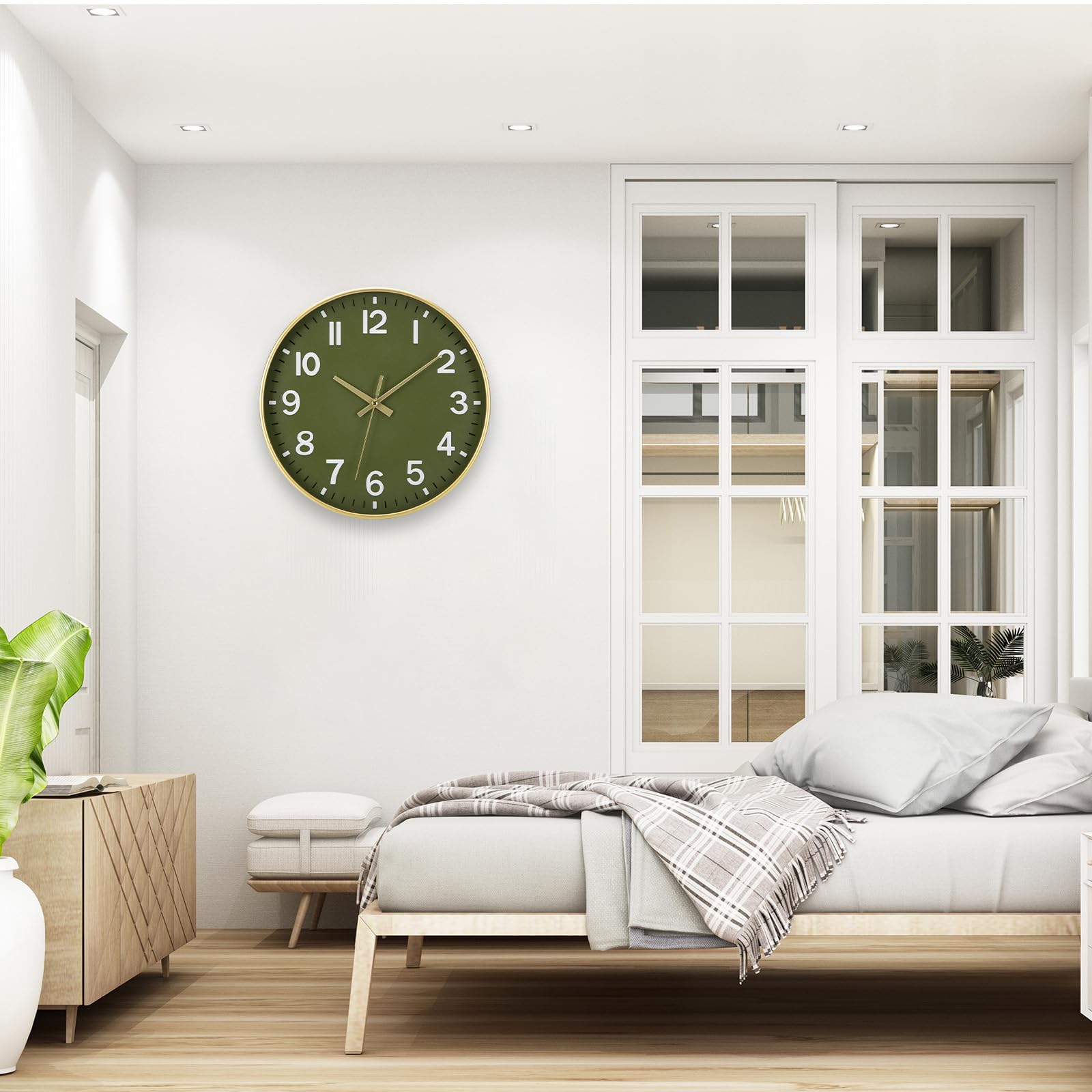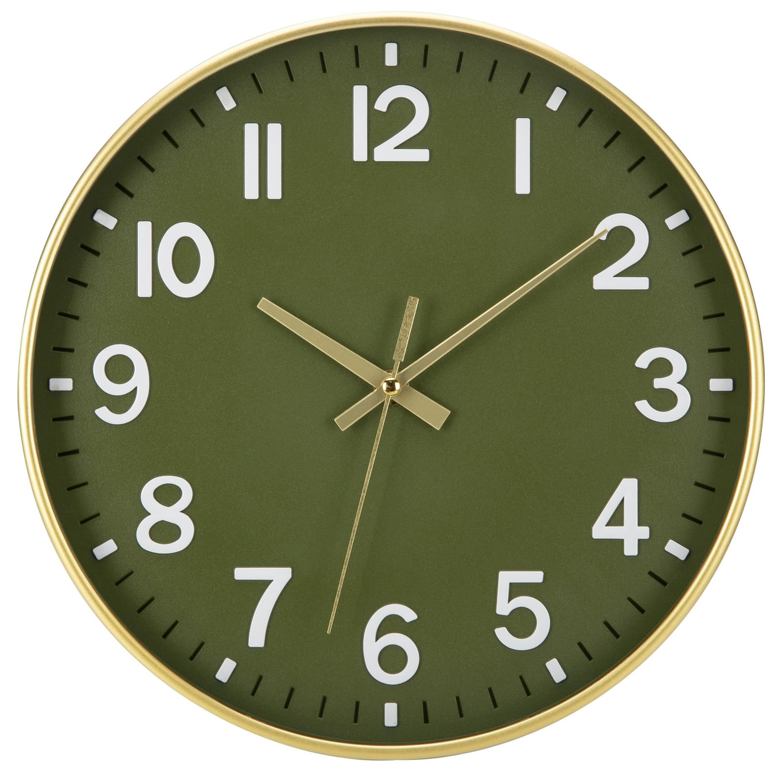 ACCSHINE Wanduhr Ohne TickgeräUsche Lautlos 30cm Modern Quarz Gross Batterie Betriebene Stereo Digital Wanduhr Einfach zu Lesen für Zimmer Zuhause KüChe Schlafzimmer BüRo Schule (Grün+Gold)