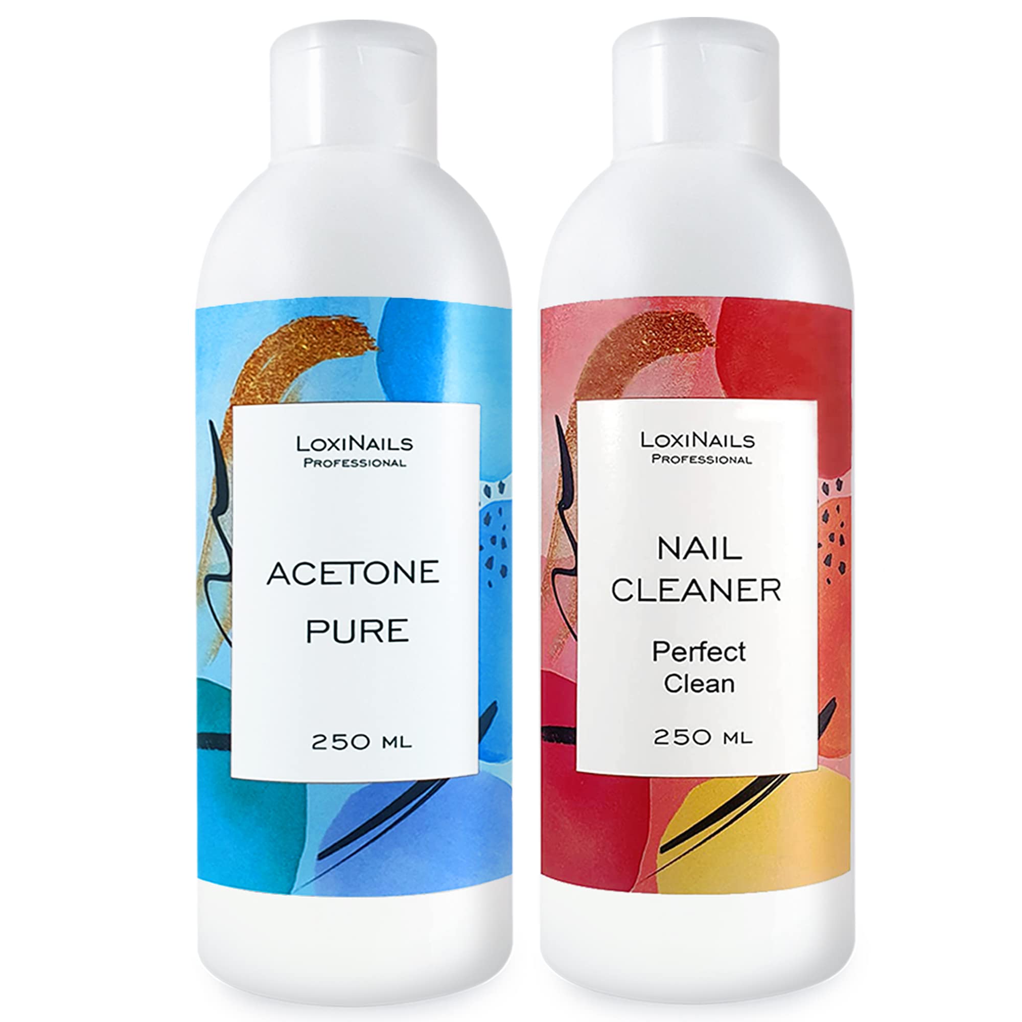 LoxiNails Nail Cleaner & Aceton Set, UV Gel Nagellackentferner & Entfetter, 2 x 250 ml