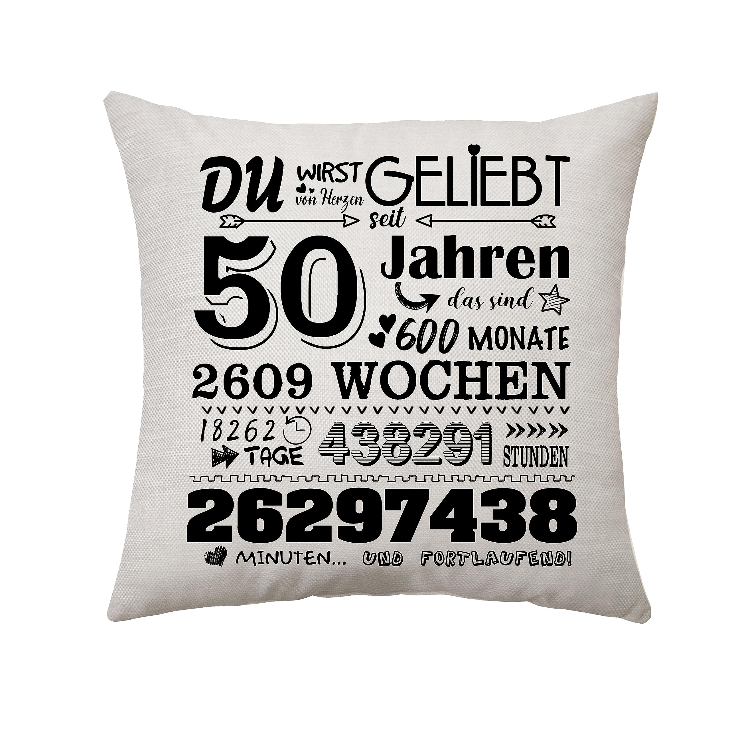 Aconesong Geschenk zum 50. Geburtstag Kissenbezug Geschenkidee für 50 Jahren Frau Mann Oma Opa Mama Papa 50. Geburtstag Deko Zierkissenbezüge 45x45cm (50th)