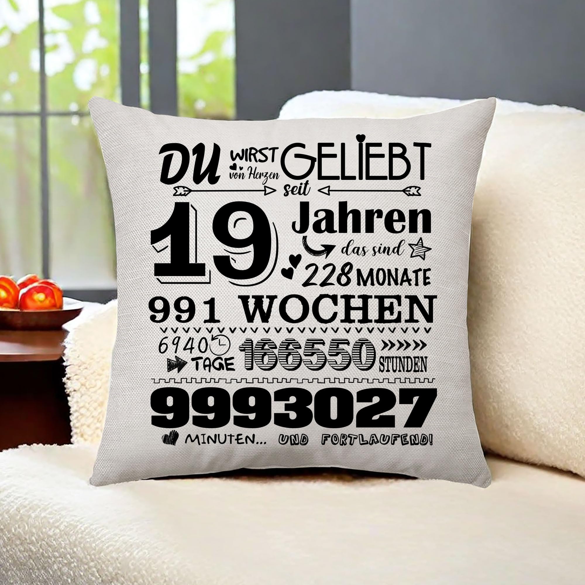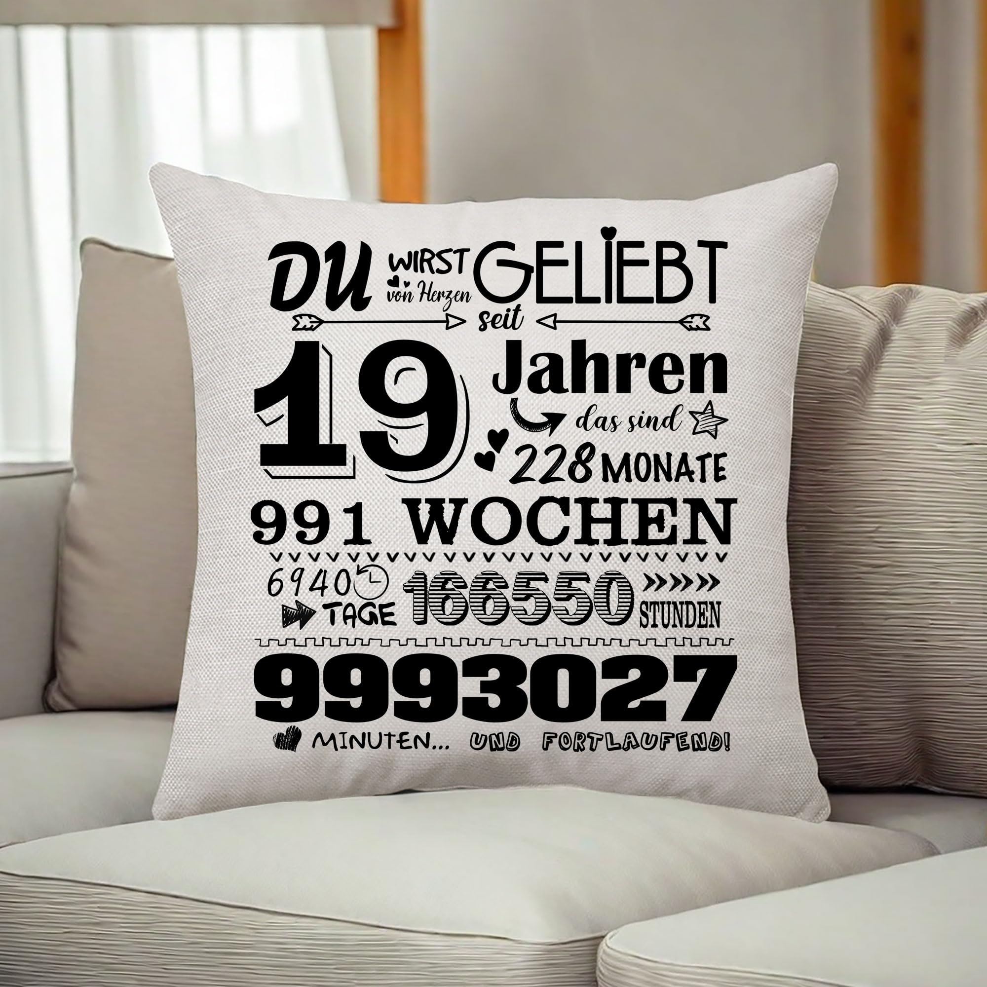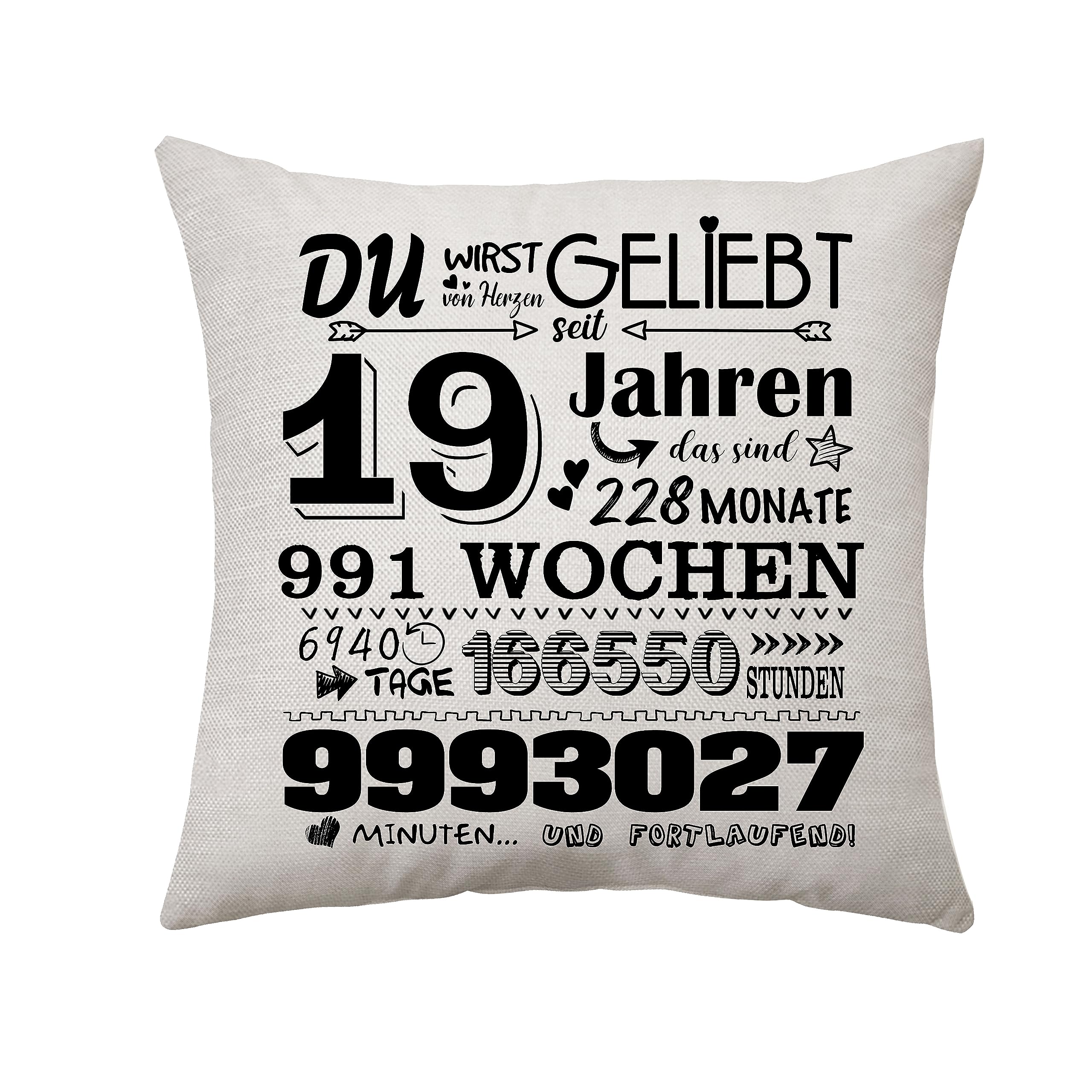 Aconesong 19. Geburtstagsgeschenk für Frauen Männer Zierkissenbezüge Geschenk für Sie 19 Jahren Geschenke für Tochter Schwester Geschenkidee 19. Geburtstag Deko Kissenbezug 45 x 45 cm (19th)