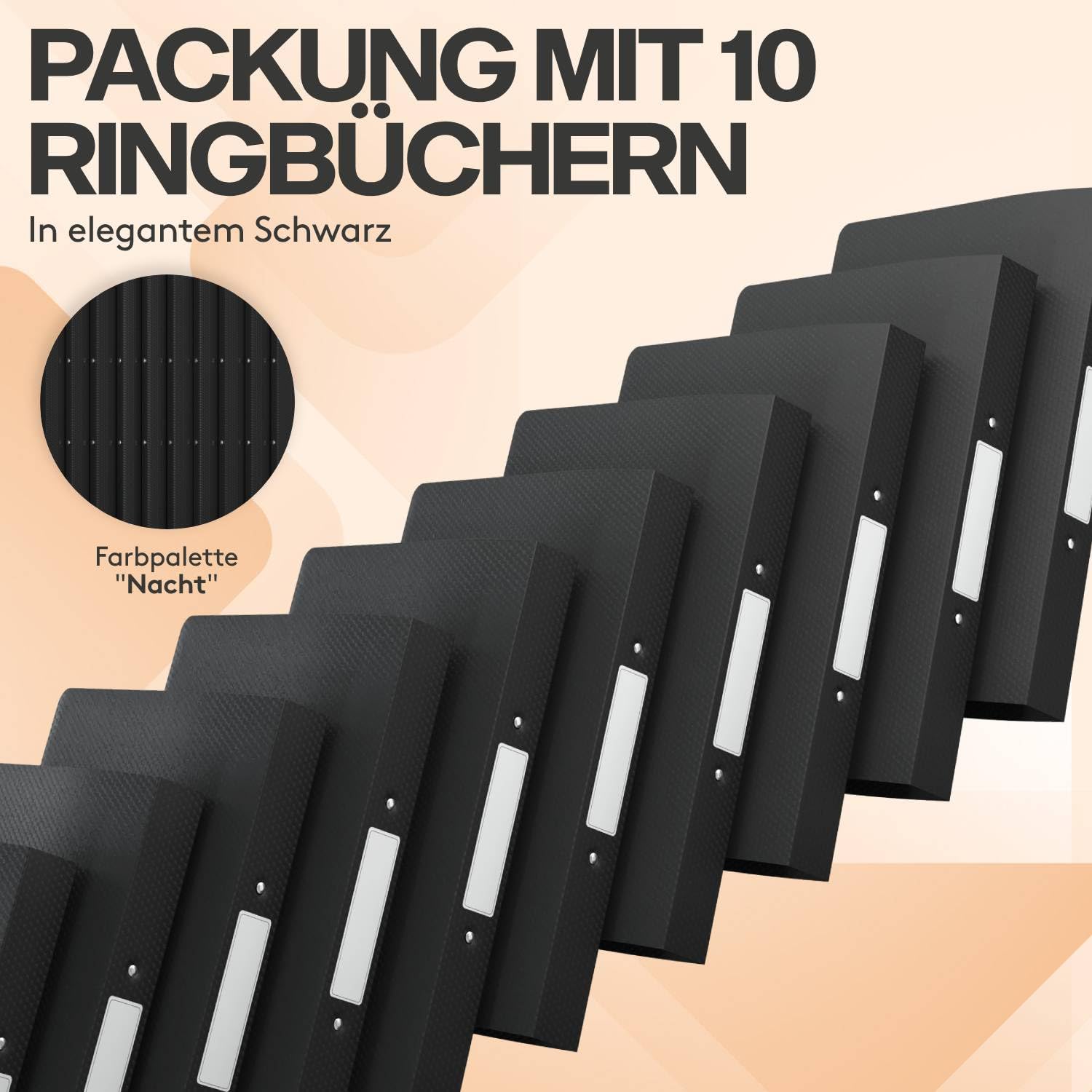 ACROPAQ - 10 x Ringbuch A4 - Mit 2 Ringen, Rückenbreite 3,5 cm, Nacht, Natur Farbkollektion - Ringhefter, Ringordner, Ordner A4 Schmal, Ringmappe A4, Schulordner