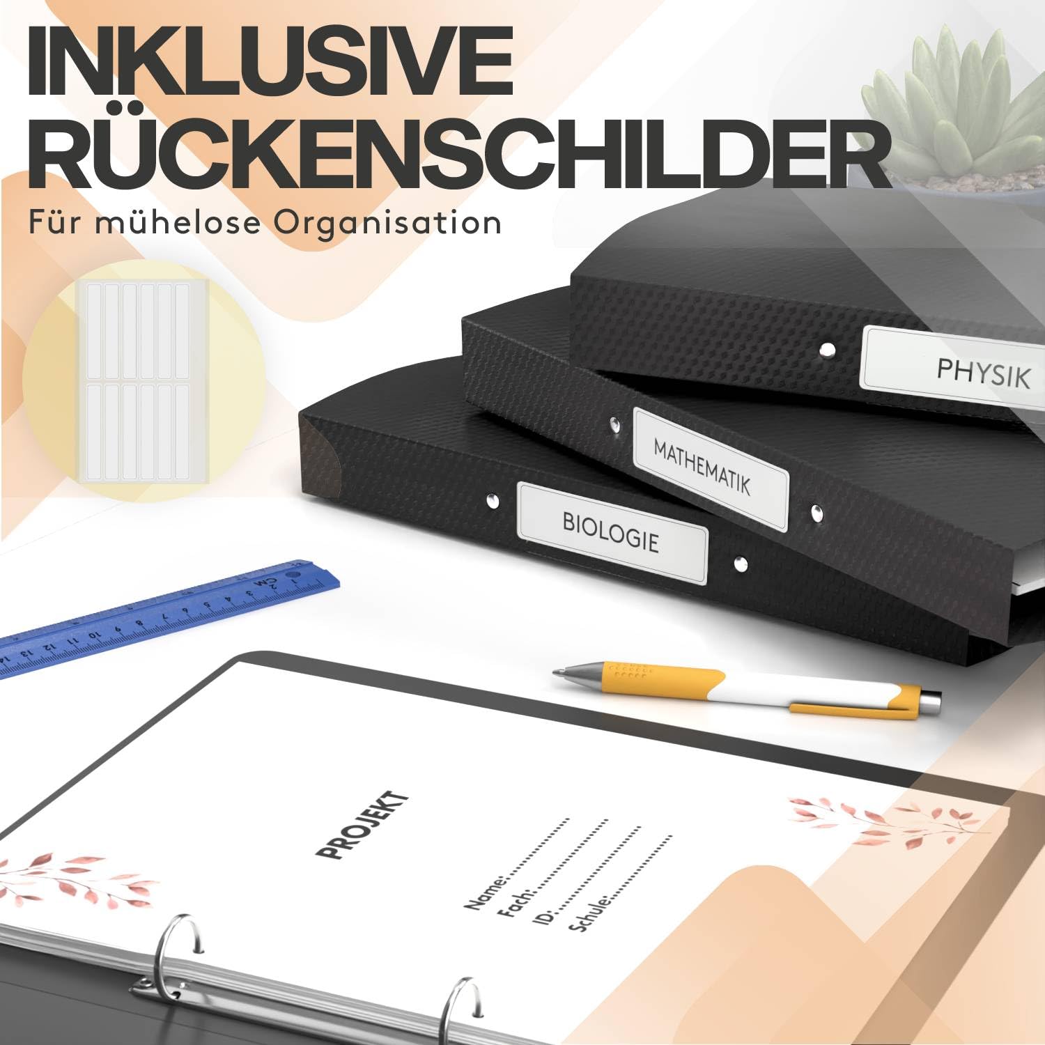 Praktisches Design - Mit einer Rückenbreite von nur 25 mm sind diese schmalen Ringbücher ideal für die effiziente Nutzung von Platz. Jeder Ordner ist mit robusten 16-mm-Doppel-O-Ringen ausgestattet und bietet Platz für 40 DIN-A4-Blätter bis zu einem Maximum von 100 Blatt.