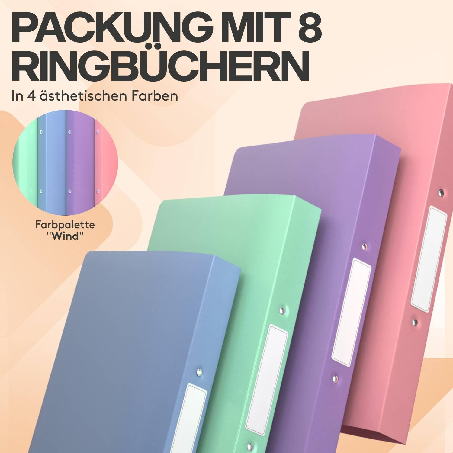 ACROPAQ - 8 x Ringbuch A4 - Mit 2 Ringen, Mit Rückenetiketten, Rückenbreite 3,5 cm, Wind, Natur Farbkollektion - Ringhefter, Ringordner, Ordner A4 Schmal, Ringmappe A4, Schulordner