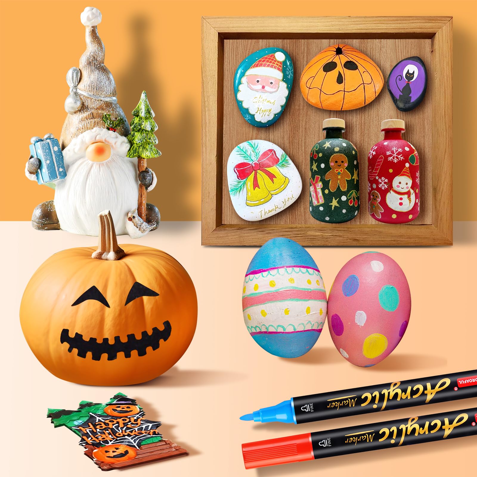 • Das perfekte Geschenk: Unser Acrylfarben-Sets sind nicht nur ein Werkzeug für das Malen, sondern auch der Schlüssel zu einer kreativen Welt. Das sorgfältig verbesserte Verpackungsdesign und Design macht es zu einem exquisiten Geschenk für Freunde, die gerne auf Steinen, Glas und Porzellan malen. Ob Weihnachten, Halloween, Geburtstag, Party, Ostern, Valentinstag oder Thanksgiving – dieses Set ermöglicht es Ihren Freunden und Familien, ihren eigenen Stil in DIY-Projekten zu finden und einzigartige festliche Dekorationen zu schaffen