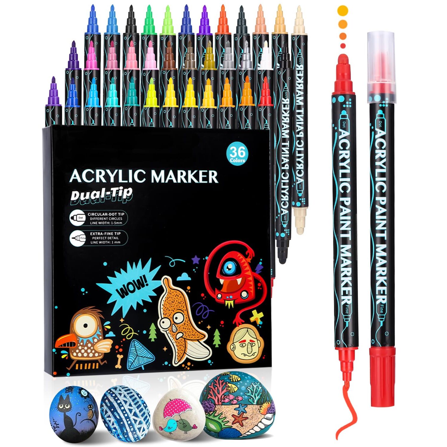Huifoo Acryllackstifte 36 Farben Doppelspitze für Keramik, Stoff, Kunststoff, Glas, Metall, Felsen, Leinwand, Papier, DIY