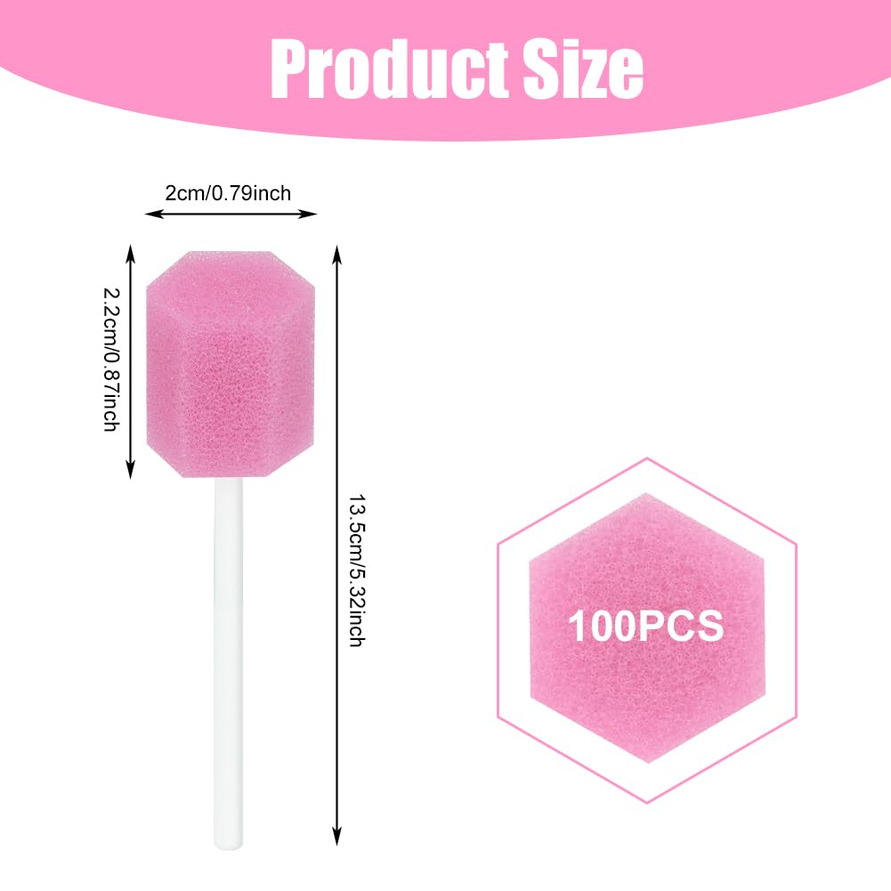 ACWOO Einweg Mundpflege Schwamm, 100 Stück Tragbare Mundschwamm Einweg, Mundpflegestäbchen für Reinigung Zahnkliniken (Rosa Hexagon)