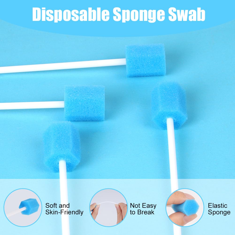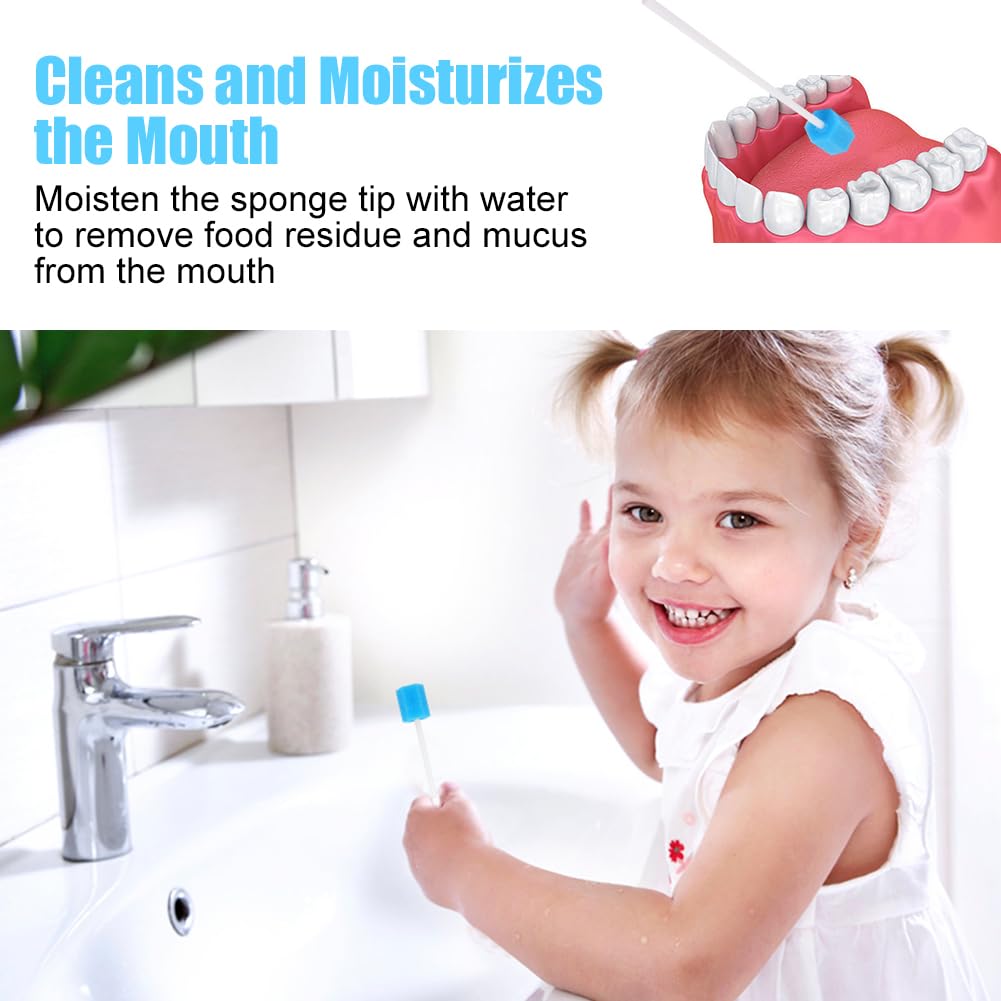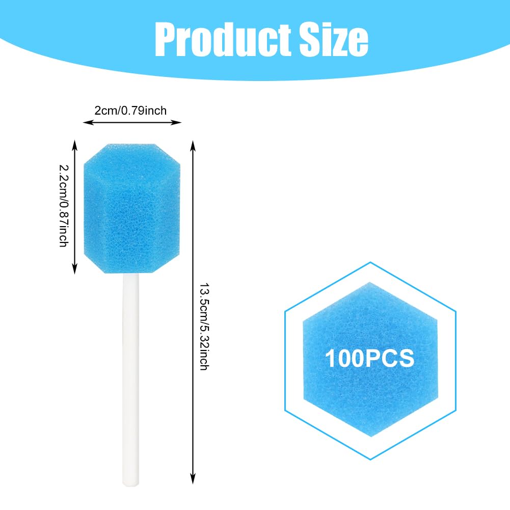 ACWOO Einweg Mundpflege Schwamm, 100 Stück Tragbare Mundschwamm Einweg, Mundpflegestäbchen für Reinigung Zahnkliniken(Blau Hexagon)