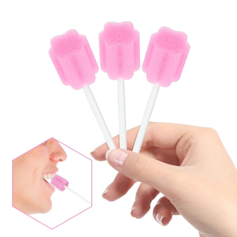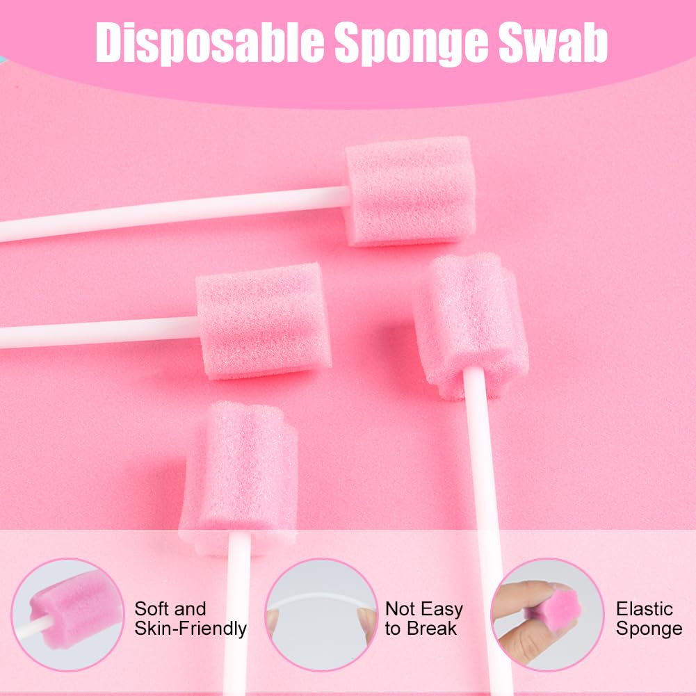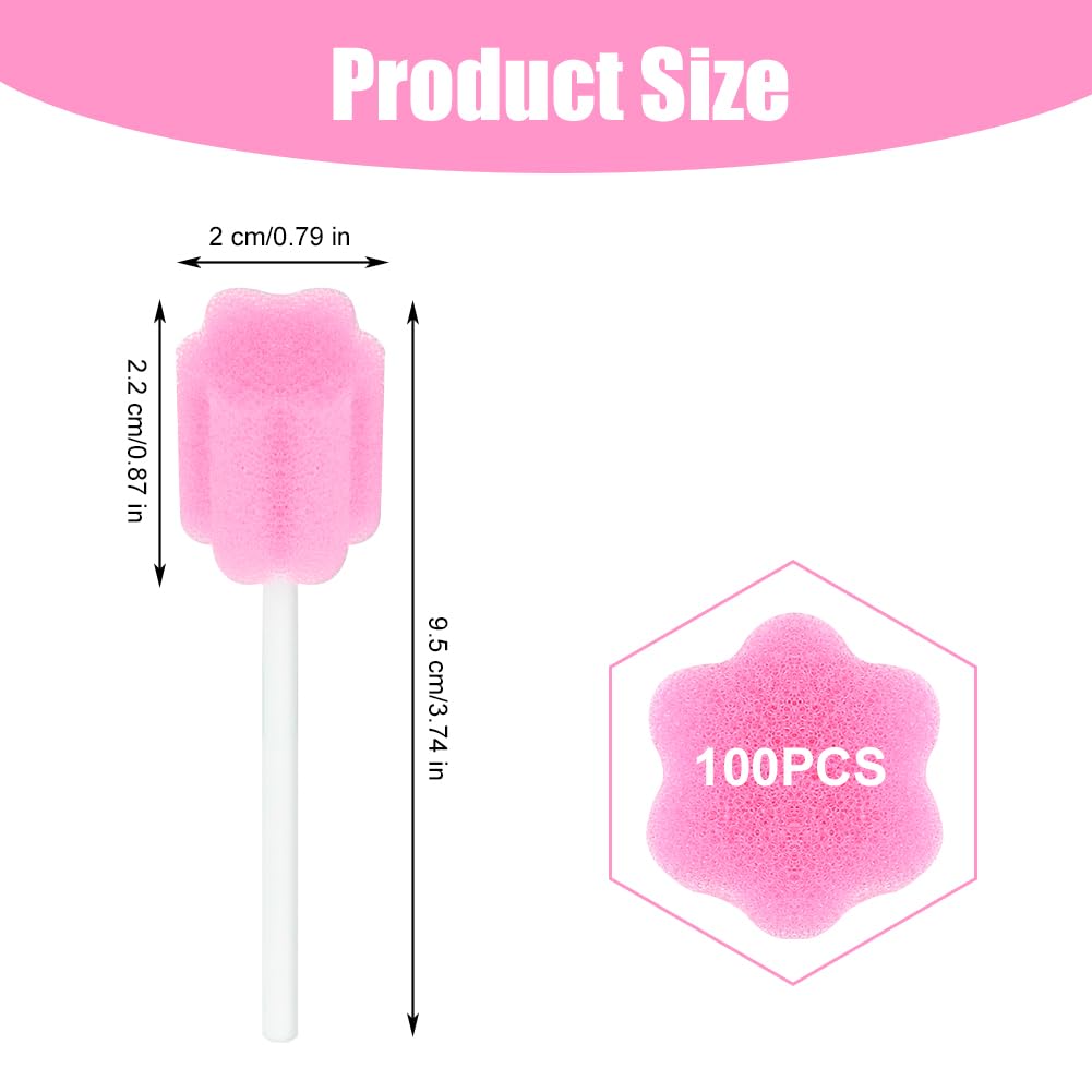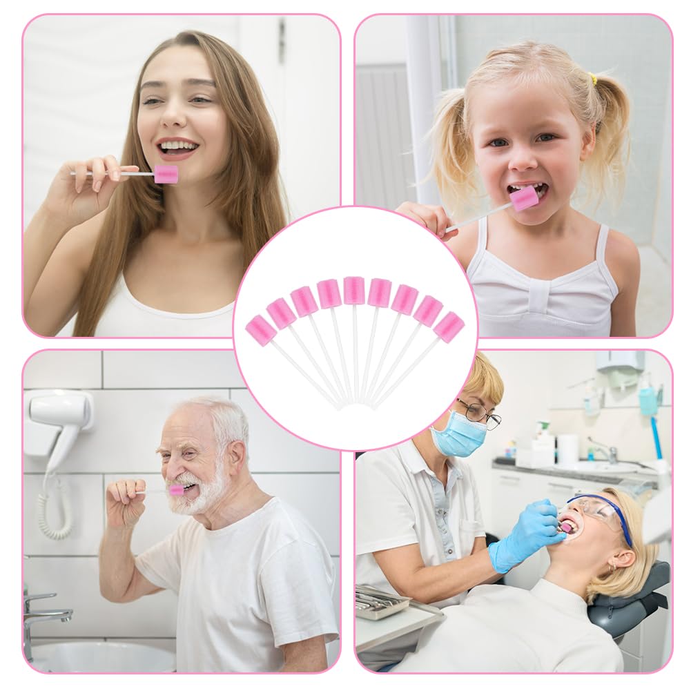 ACWOO Einweg Mundpflege Schwamm, 100 Stück Tragbare Mundschwamm Einweg, Mundpflegestäbchen für Reinigung Zahnkliniken (Rosa)