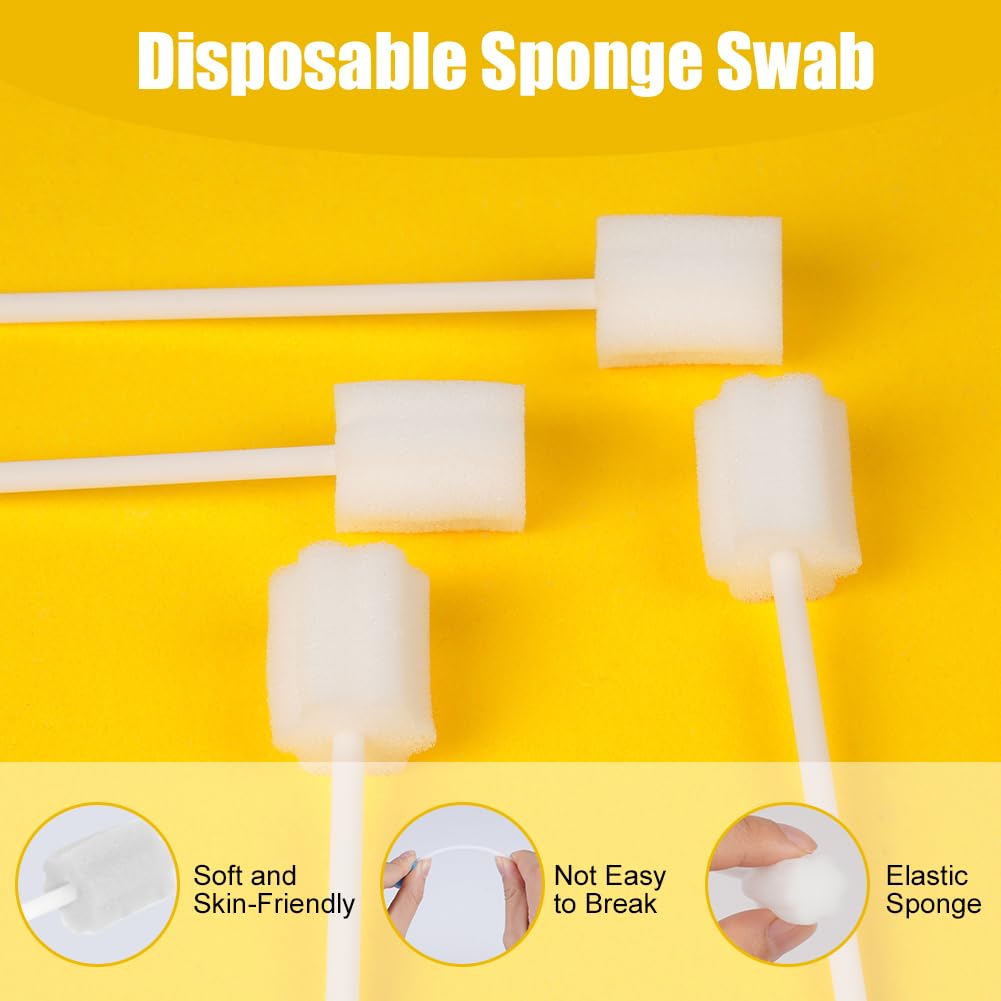 ACWOO Einweg Mundpflege Schwamm, 100 Stück Tragbare Mundschwamm Einweg, Mundpflegestäbchen für Reinigung Zahnkliniken (Weiss)