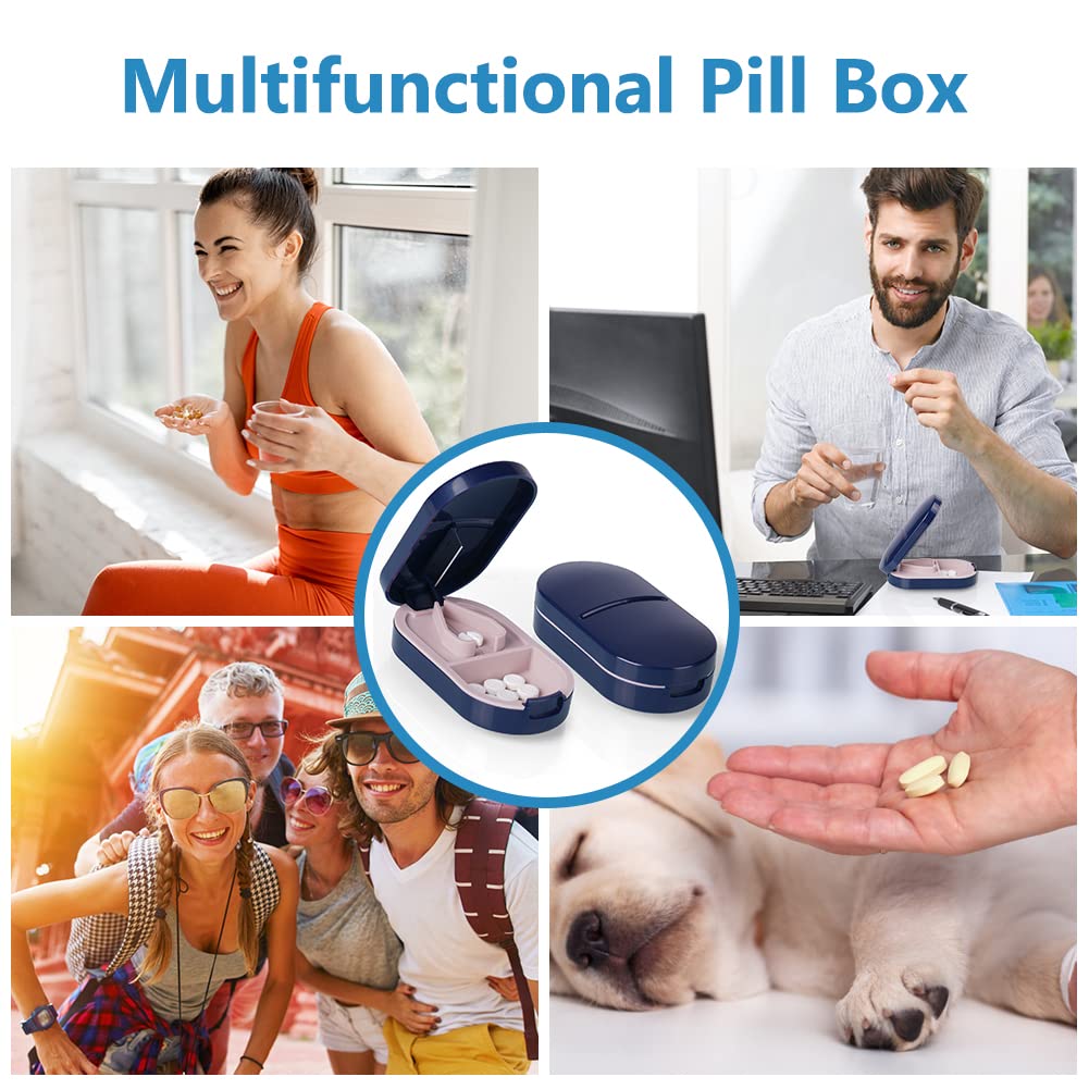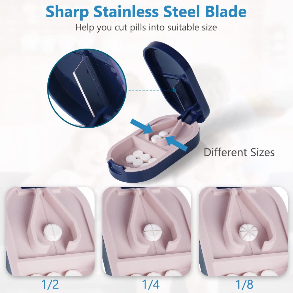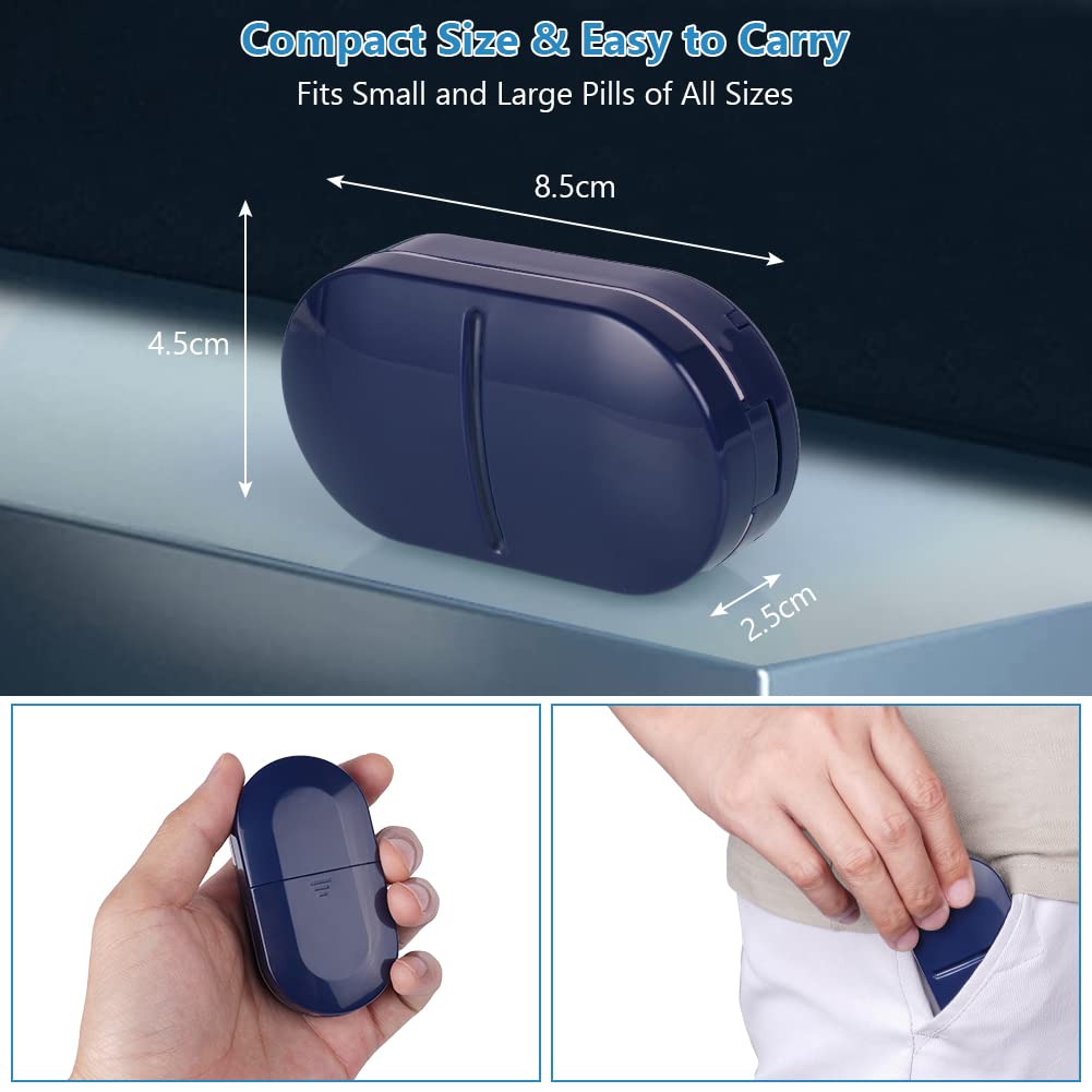 ACWOO Tablettenteiler, Tablettenteiler für Kleine und Grosse Tabletten, Tablettenschneider mit Aufbewahrungsfach, Tragbarer Pillenschneider mit Scharfen Klingen für Reise & täglichen Gebrauch (Blau)