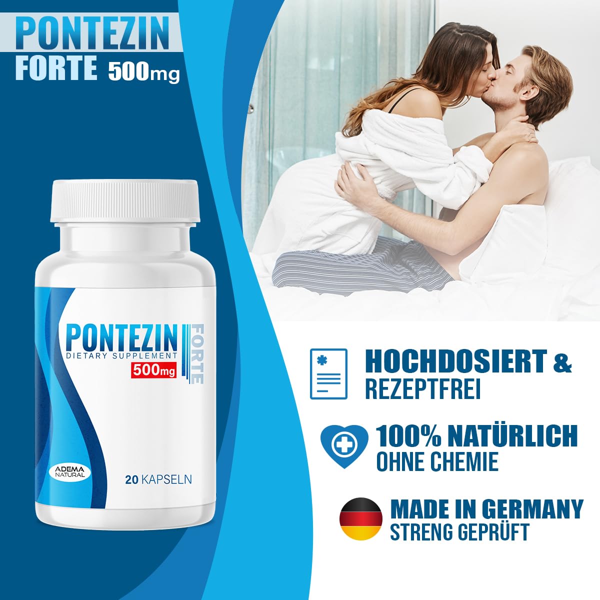 ADEMA NATURAL Pontezin® 500mg – Extra stark abgestimmt auf die Bedürfnisse für Männer - Sofortwirkung - Hochdosiert für den abenteuerlustigen Mann - Premium Qualität mit L-Arginin + Maca – 20 Kapseln