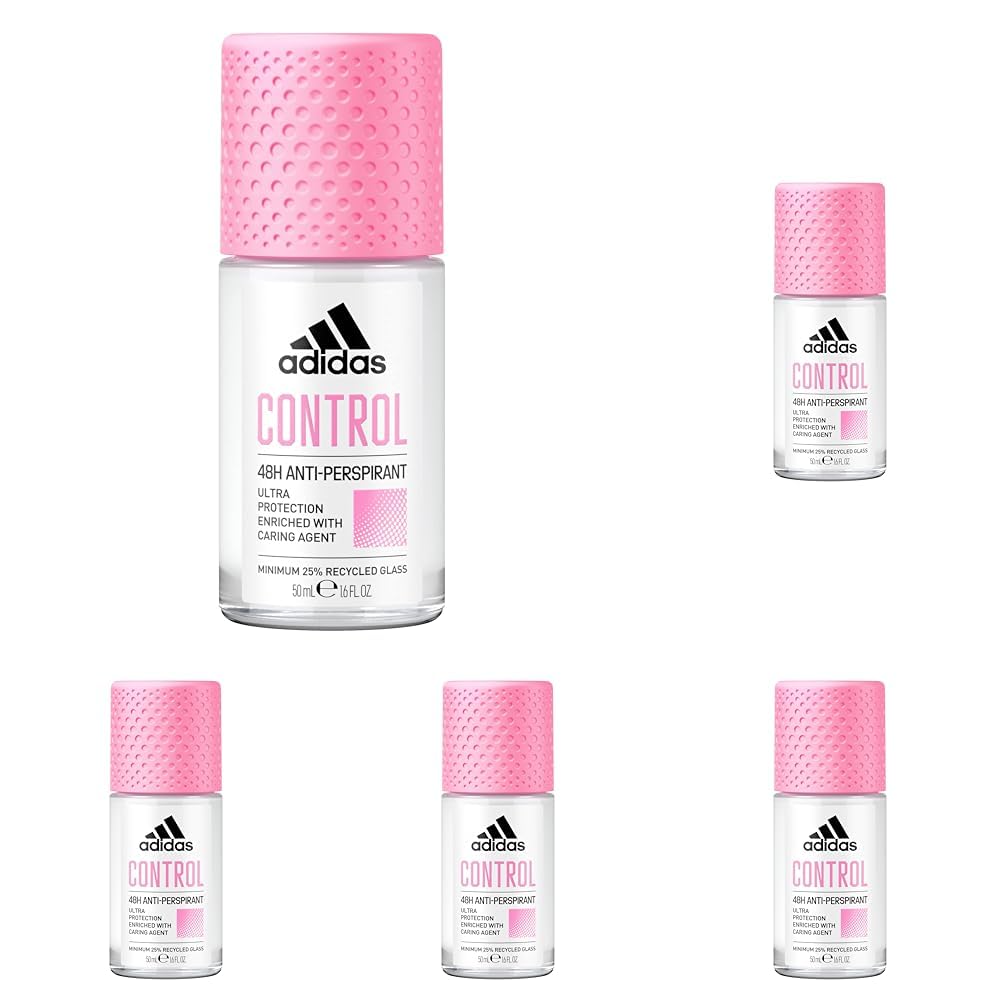 adidas Control Anti-Transpirant Deo Roll-On für sie, 48 Stunden Trockenschutz und langanhaltende Frische, vegan, 50 ml (Packung mit 5)