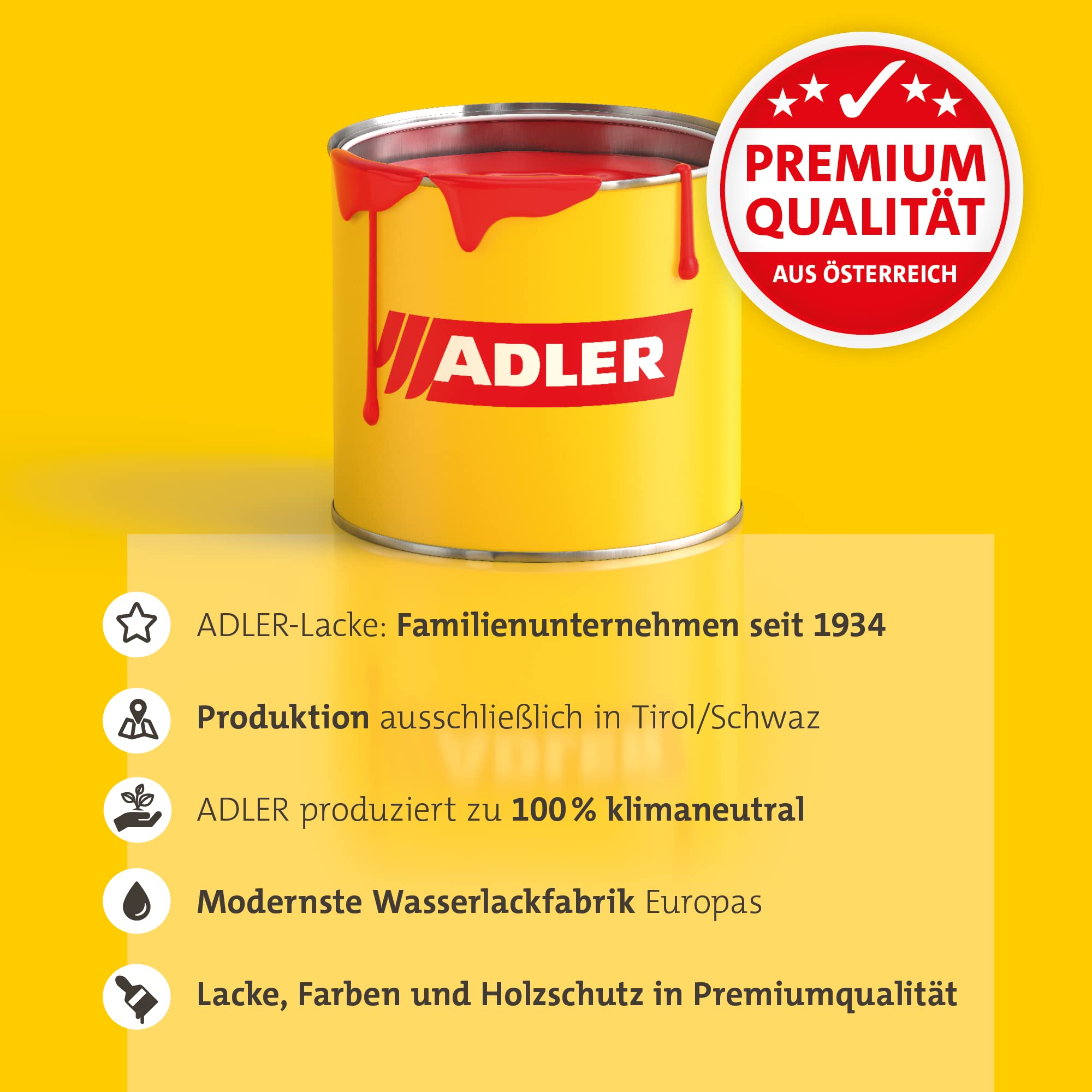 • ADLER - Familienbetrieb seit 1934 - Österreichs führender Hersteller von Lacken, Farben & Holzschutzprodukten garantiert höchste Zufriedenheit, hochwertige Qualität, umfassendes Anwendungswissen und umweltschonende Produkte in Premium-Markenqualität